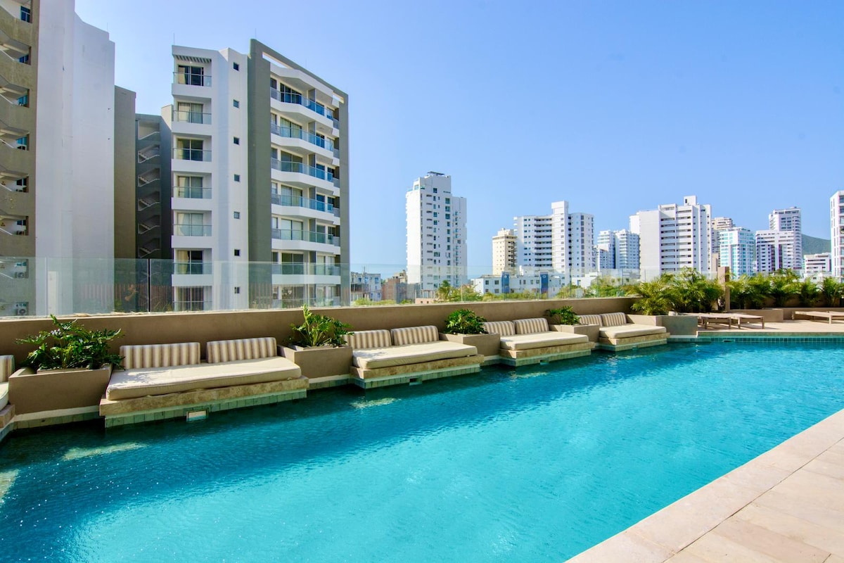 🌅 77m² Oceanfront Loft: Your Paradise Office Wake up to the waves in this spacious 77m² (830 sq ft) loft, perfectly designed for work and relaxation. Exclusivity: Access to a private beach and 2 pools. Remote Work: High-speed Wi-Fi and ocean-front workspace. Comfort: Full AC, equipped kitchen, and balcony with a hammock. Location: Safe area in El Rodadero, steps from cafes, restaurants, supermarkets and 15 min from the airport. Perfect for digital nomads and long-term stays.