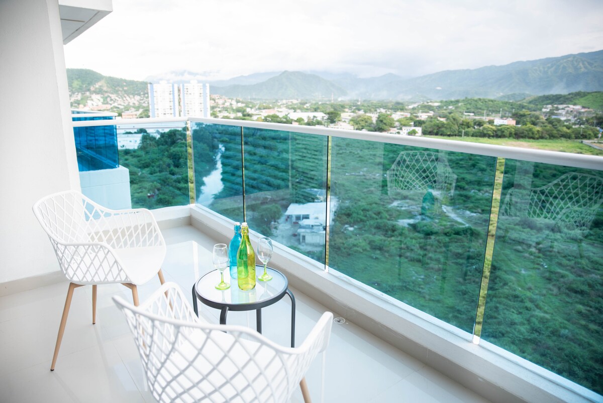 Kamangha - manghang at bagong - bagong apartment sa lugar ng Playa Salguero, Santa Marta. Ang apartment na ito ay may tanawin mula sa balkonahe hanggang sa ilog, mga bundok, kalikasan, at bahagyang sa karagatan; ngunit isang espectacular na buong tanawin mula sa rooftop. May direktang access sa beach ang condo. Ang magandang apartment na ito ay magpaparamdam sa iyo na ikaw ay nasa isang hotel ngunit mapanatili ang maginhawang pakiramdam ng isang bahay. 10 minuto lamang ang layo nito mula sa airport. Nilagyan ang apartment ng magagandang muwebles.