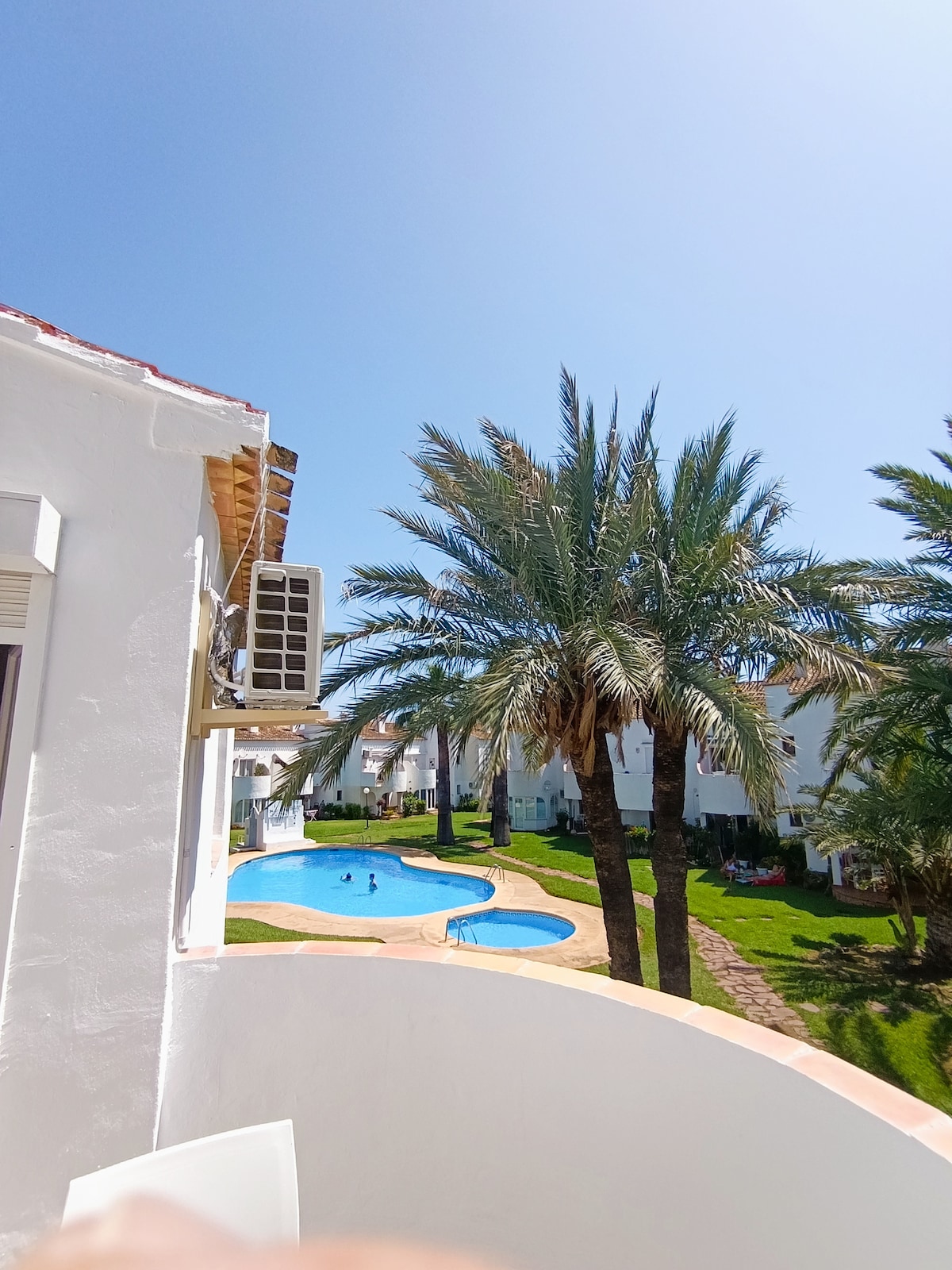Maligayang pagdating sa aming komportableng apartment, limang minuto ang layo mula sa beach sa pamamagitan ng kotse at 15 minuto ang layo mula sa lungsod sa pamamagitan ng paglalakad. Masiyahan sa aming pool at isang magandang hardin na may mga tanawin ng bundok. Ang apartment, na may kumpletong pagkukumpuni kamakailan, ay matatagpuan sa isang tahimik na condo at may dishwasher, kumpletong kusina, washing machine, air conditioner at simetrikong fiber internet na 600mb. Ito ay perpekto para sa isang pares o para sa malayuang pagtatrabaho. Ito ay isang perpektong base para sa iyong mga paglalakbay sa Mediterranean.
