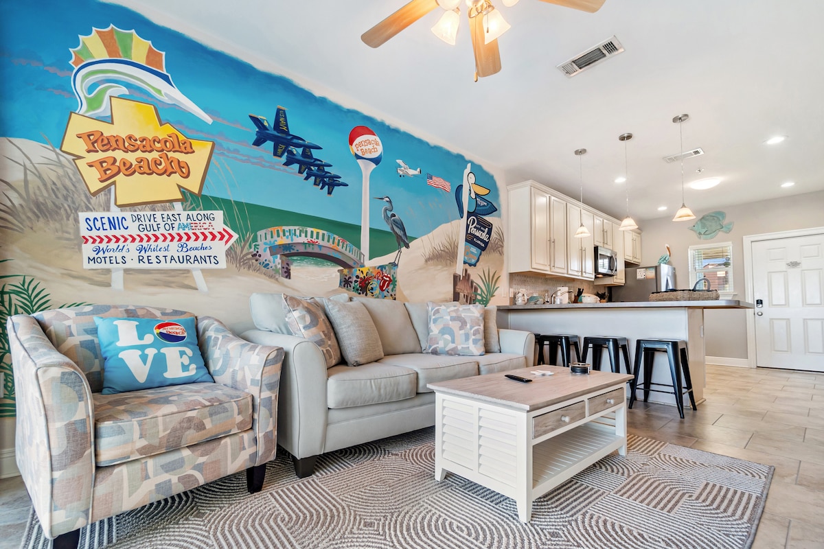 Bumalik at magrelaks sa tahimik at naka - istilong bungalow na ito. Napakalapit sa NAS Pensacola 2 bloke papunta sa magagandang bayou (maraming beses na puno ng mga dolphin) at parke na may mga trail na naglalakad. Dalhin ang iyong kayak! Maaari mong makita ang pagsasanay ng Blue Angels sa malinis at naka - istilong tuluyang ito na puno ng maraming maliliit na amenidad! Ang mga higaan ay sobrang komportableng Kapitbahayan ay mapayapa at ligtas na Perdido Key Beach ay 15/20 minuto lang ang layo! Mga beach na may puting buhangin na asukal. Kumpleto ang stock at may supply na kusina, magandang silid - araw, malaking deck