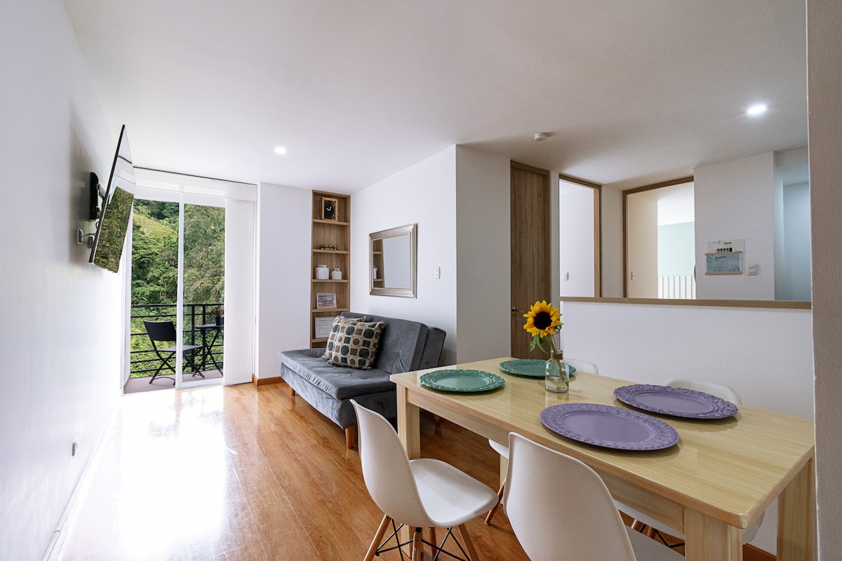Disfruta de este hermoso Apartamento ubicado en la zona rosa de Santa Rosa de Cabal, rodeado de un ambiente alegre, cerca de restaurantes, bares, comidas rápidas a solo 4 cuadras del parque principal. A dos cuadras puedes encontrar 2 supermercados. El acceso vehicular es fácil, así como el transporte público, lo cual facilita el transporte hacia termales de Santa Rosa que queda a 10km del apartamento.