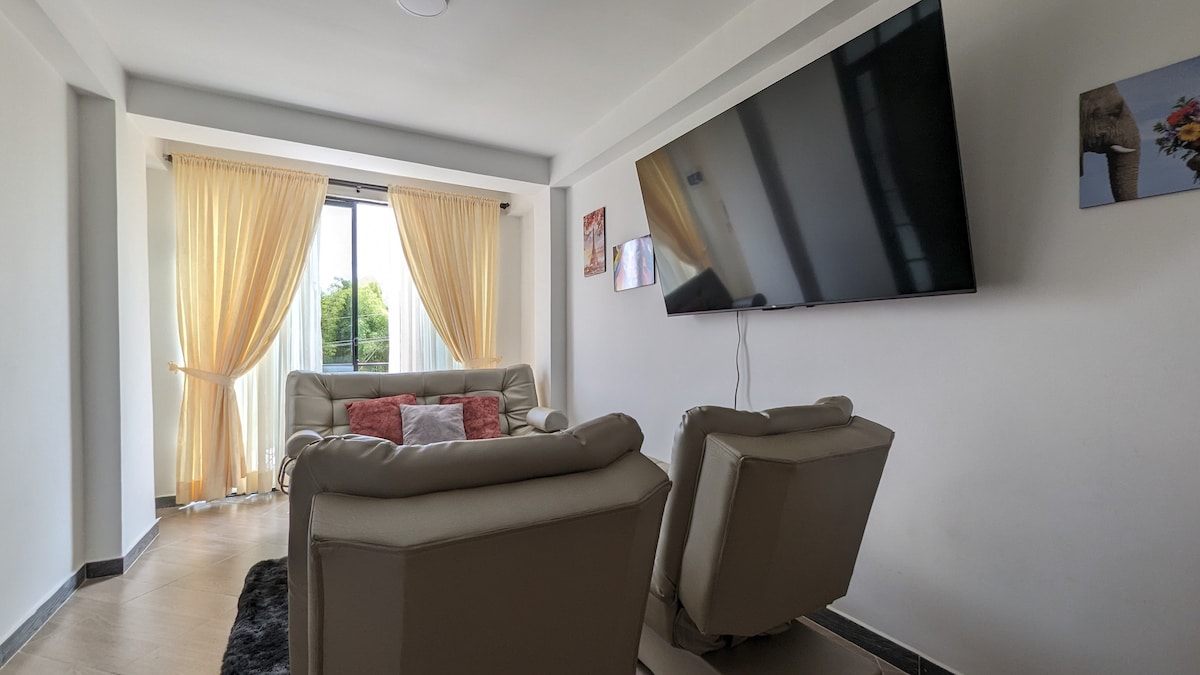 El apartamento está ubicado en un conjunto residencial tranquilo cerca del centro de Santa Rosa. Es un lugar rodeado de montañas, con un lindo paisaje. Actualmente están terminando un edificio enseguida lo que genera ruido en algunos horarios, para dormir en la noche es silencioso, pero si quieres estar todo el día te recomendaría elegir otro lugar. Para mantener la armonía del edificio se pide a nuestros huéspedes evitar los volúmenes elevados de música y de la voz.