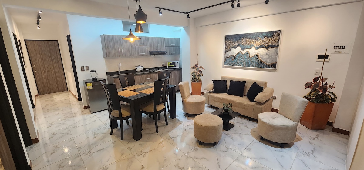 Disfruta de la mejor experiencia con un alojamiento elegante en un Piso 4 privado muy céntrico Totalmente legal, con seguro hotelero y todos los registros. Cerca a la zona turística los Termales. Encuentras electrodomésticos y una decoración vanguardista que te harán sentir muy cómodo. En sus alrededores cuenta con supermercados, restaurantes y zona rosa para que disfrutes de toda una estancia plena y sin preocupaciones. Cuenta con parqueadero privado totalmente cubierto para mayor seguridad