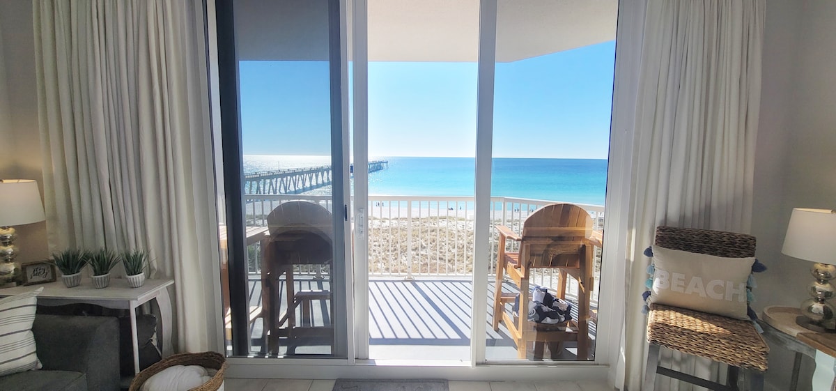 Maligayang pagdating sa "Salty Beach" Condo! Isang bagong nakalistang at bagong pinalamutian na Gulf Front 1 BR, 6 na tulugan! 1st building sa tabi ng Navarre Pier. Matatagpuan sa ika -4 na palapag. May 2 elevator. Walking distance lang ang mga restaurant. Mga nakakamanghang tanawin ng Gulf, pagsikat ng araw at paglubog ng araw. HS internet na may mga smart TV. Tingnan ang aking mga review sa SuperHost! Libreng pang - araw - araw na serbisyo sa beach: (PANA - PANAHONG)Mar1 - Oktubre 31 May kasamang dalawang upuan, isang payong, isang folding table. May kasamang stand - up na paddleboard o kayak nang 1 oras araw - araw.