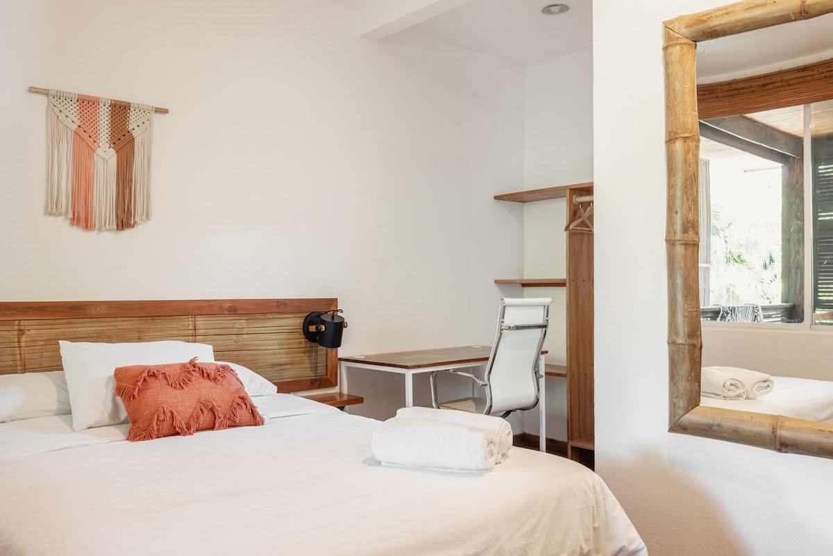 Tuklasin ang iyong slice ng paraiso na matatagpuan sa kagubatan ng Costa Rican! Binubuo ang magandang tuluyang ito ng bukas na planong upuan/kainan/kusina, 1 ensuite double room, 1 double room at banyo, na may mga balkonahe na may mga nakamamanghang tanawin ng kagubatan at kasiya - siyang workspace na may high - speed WiFi. Sa pribadong paradahan, matitiyak ang iyong kapanatagan ng isip. Iniangkop ang kanlungan na ito para sa mga kaluluwang iyon na naghahanap ng katahimikan at inspirasyon at matatagpuan 3 km lang ang layo mula sa Playa Carmen at 5 km mula sa SantaTeresa Village.