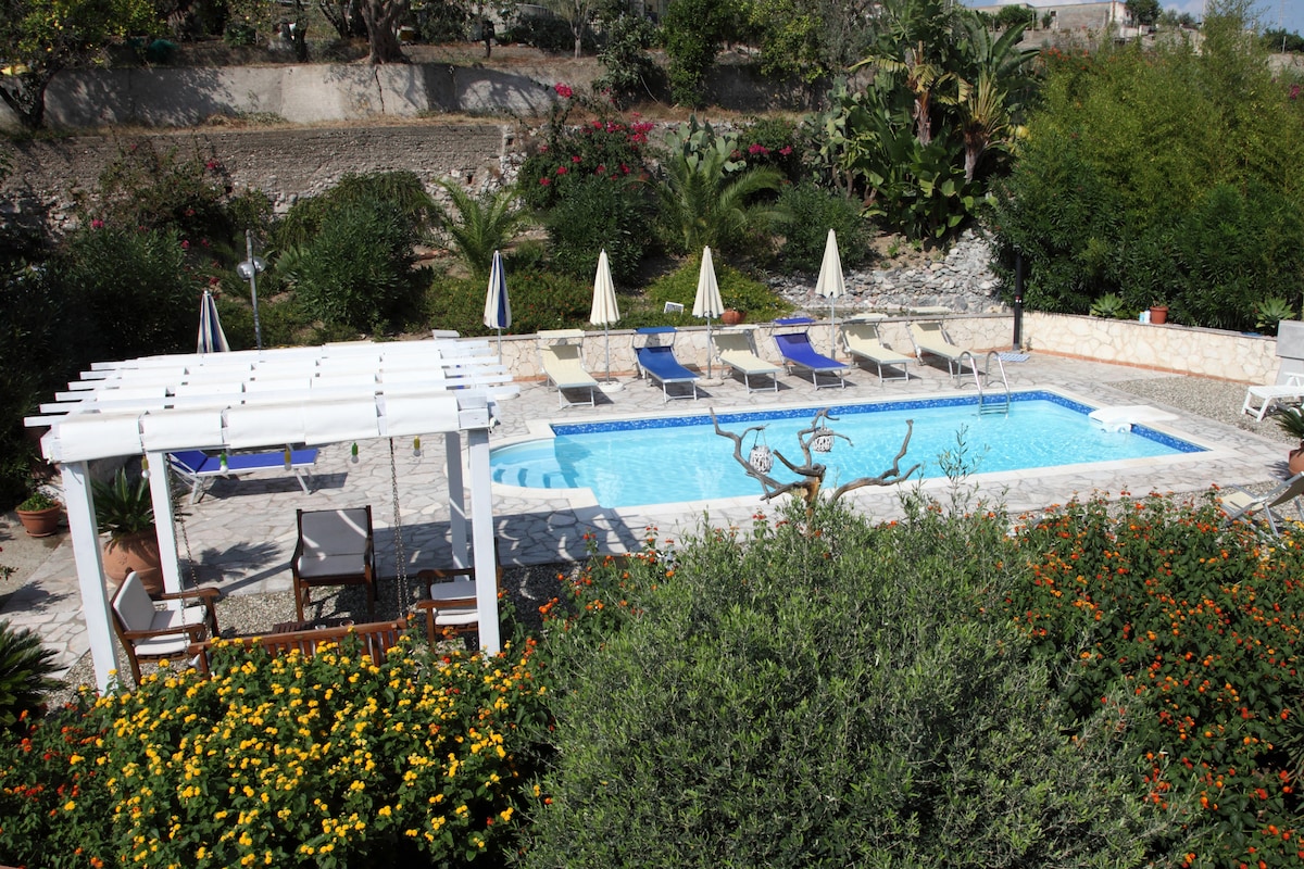 VILLA LOU TAORMINA Pribadong Villa Panoramic Sea View Pool Ang villa ay may isang furnished terrace na nakaharap sa dagat kung saan maaari kang magrelaks at kumain at ang mga bisita ay may eksklusibong paggamit ng isang tanawin ng dagat pribadong swimming pool ..napapalibutan ng isang malaking hardin na may mga palad at kakaibang halaman DAPAT UMAKYAT NG HAGDAN GAYA NG NAKASAAD SA ILALIM NG KALIGTASAN AT ARI - ARIAN.