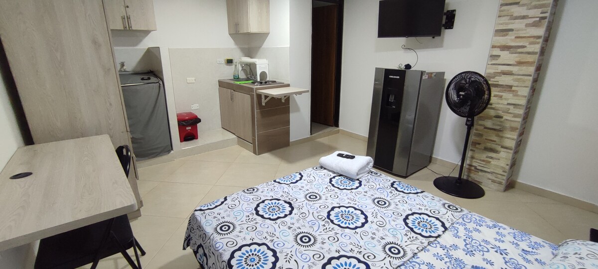 Mamalagi sa Bucaramanga Malapit sa industrial shoe zone; alfonso Lopez stadium, UIS. 5 minuto mula sa Clinica Comuneros y del HUS, at 10 minuto papunta sa sentro ng negosyo ng lungsod, mga shopping mall , Hipermercados. Ang loft na uri ng Ataestudio ay binubuo ng isang solong kuwarto , isang kuwartong may double bed at lugar ng trabaho; silid - kainan na may sofa folding bed, TV sala na may smartTv na 43" , Lugar ng trabaho na may malakas na Wifi, kumpletong kusina, lugar ng damit at 1 banyo