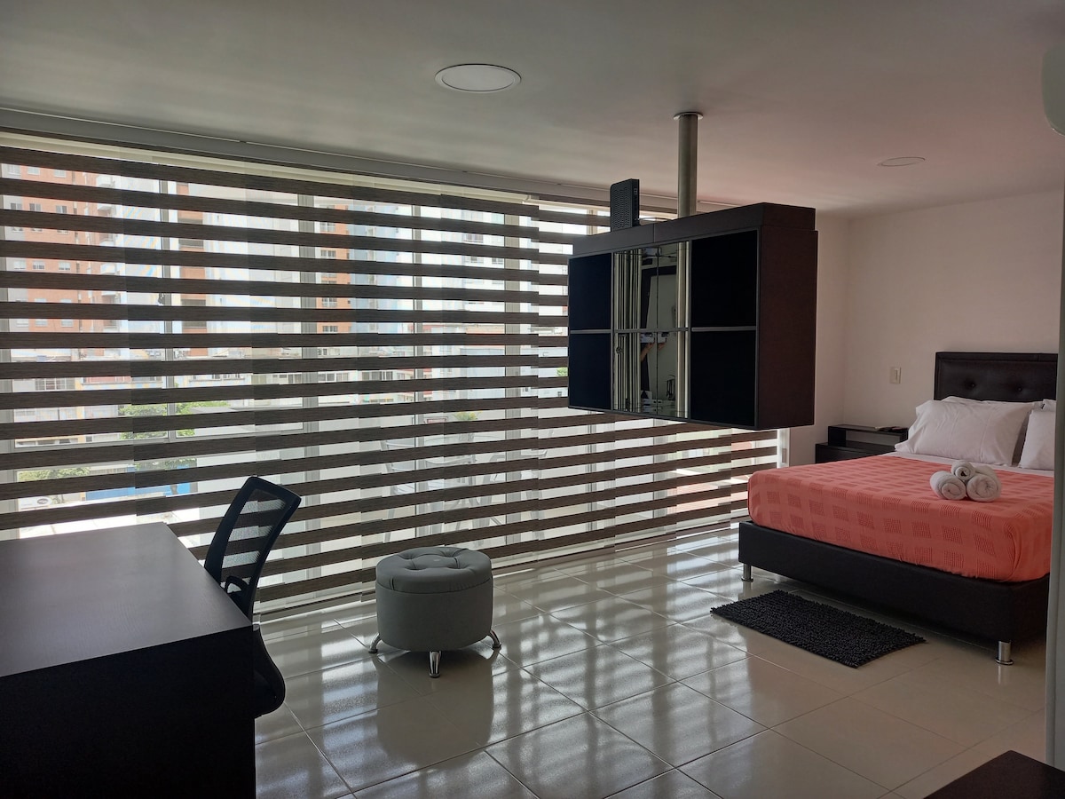 Modernong Apartaestudio sa Bucaramanga, para mamuhay ng karanasan na may estilo, kaginhawaan at kaginhawaan. Madiskarteng lokasyon 5 minuto mula sa sentro ng lungsod at mga shopping mall tulad ng Cacique at Cabecera. Mayroon itong independiyenteng lugar ng paglalaba, apartment na kumpleto ang kagamitan at kumpleto ang kagamitan, pati na rin ang pambihirang tanawin ng lungsod at mga silangang burol nito (ika -27 palapag). Ang gusali ay may 24 na oras na surveillance, sakop na paradahan, at lobby/reception na may maluluwag na kuwarto at mga amenidad.