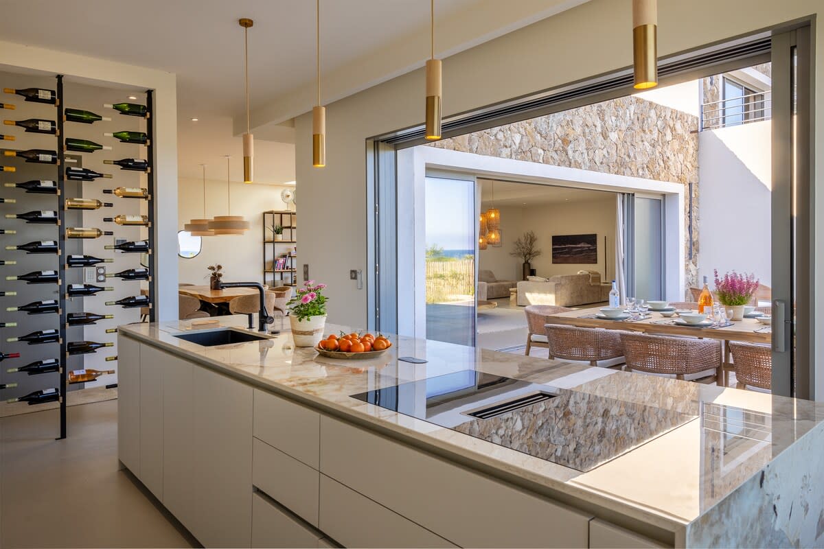 Pinagsasama ng 120 sqm na bahay na ito ang marangya at kaginhawaan. Ang maliwanag na sala ay may mga nakamamanghang tanawin, ang modernong kusina ay nilagyan. Nag - aalok ang dalawang maluwang na silid - tulugan ng mapayapang bakasyunan, habang nakakarelaks na santuwaryo ang master bathroom. Sa labas, may 200m² terrace na nag - iimbita sa iyo na magrelaks, kung saan matatanaw ang pinainit na pool at walang harang na tanawin ng dagat. Matatagpuan ilang minuto lang mula sa nayon at beach, nag - aalok ito ng perpektong balanse ng privacy at kaginhawaan.