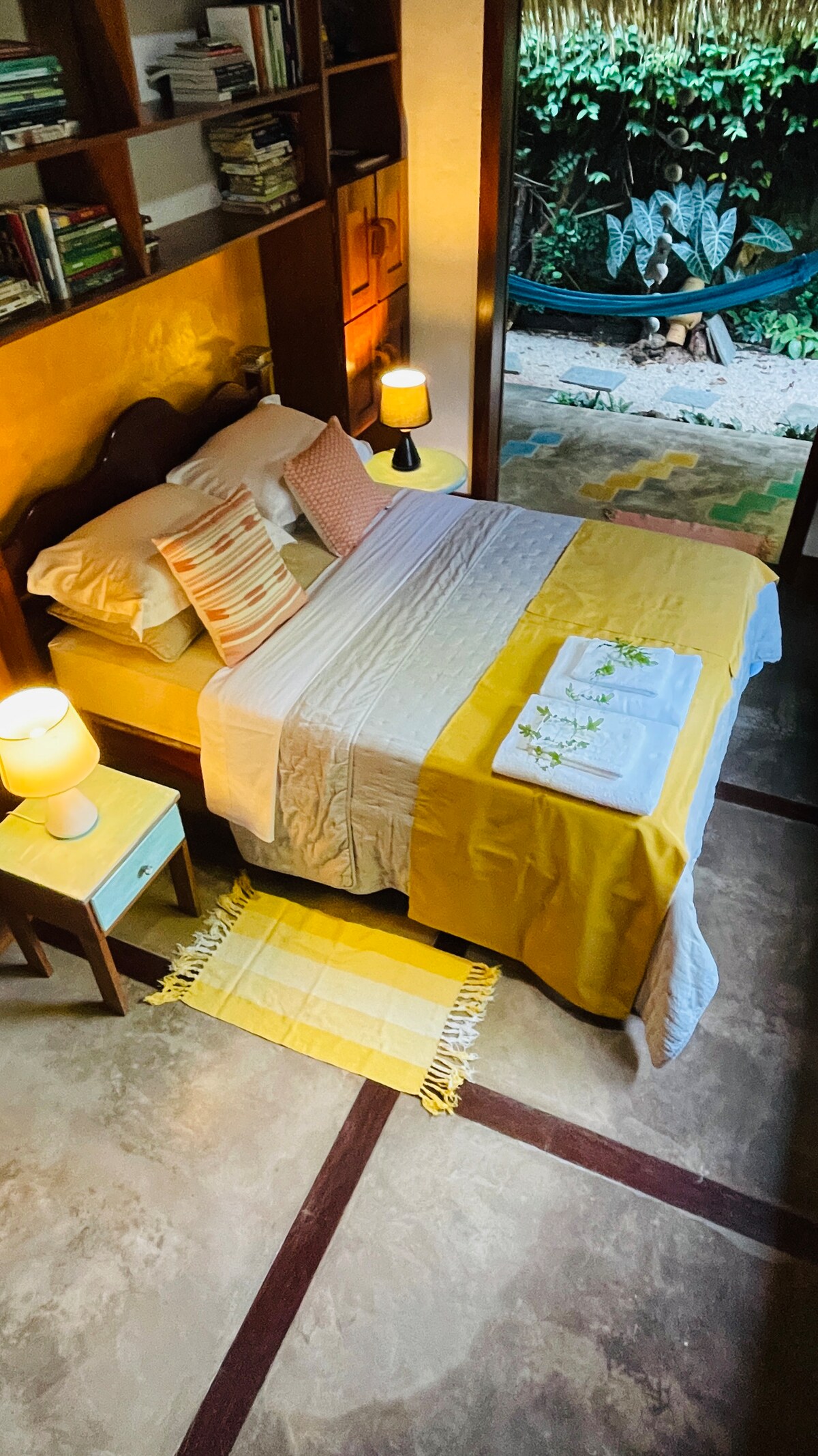 Somos uma casa de hospedagem intimista e alimentação afetiva. Aceitamos estadias longas. Ambiente rústico, arejado e confortável que funde habitação, gastronomia e hospitalidade local aos serviços contemporâneos. Nossa casa é ventilada e tem presença constante de macacos, esquilos, borboletas e passarinhos incríveis. Constituiu-se da soma de nossa vivência e experiência, aqui.