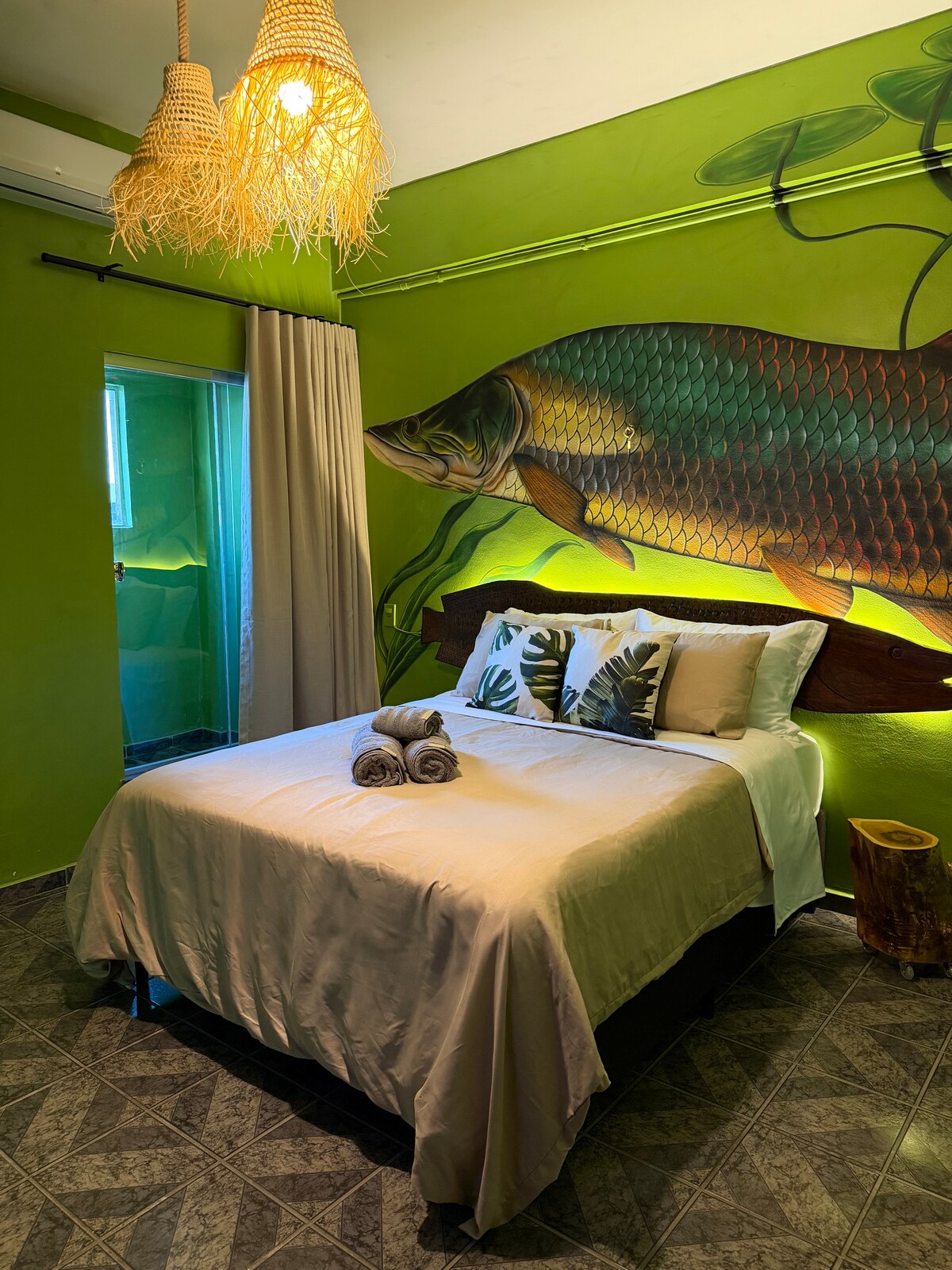 Araras, Amazonian Suite na may orihinal na likhang‑sining at sopistikadong tropikal na pagkakakilanlan sa gitna ng lungsod. Queen bed na may mga premium boutique linen, eksklusibong kapaligiran at pribadong banyo Magandang lokasyon, malapit sa lahat Mag-enjoy sa pamamalagi mo kasama si • Smart TV •Wi - Fi • Lugar ng trabaho • Minibar • Coffee maker •Electric kettle Shared area na may • Self-service na mini market • Washer-dryer -may dagdag na bayarin • Libreng Yelo • Balkonahe Perpekto para sa mga naghahanap ng premium na kaginhawaan na may isang tunay na karanasan sa Amazon