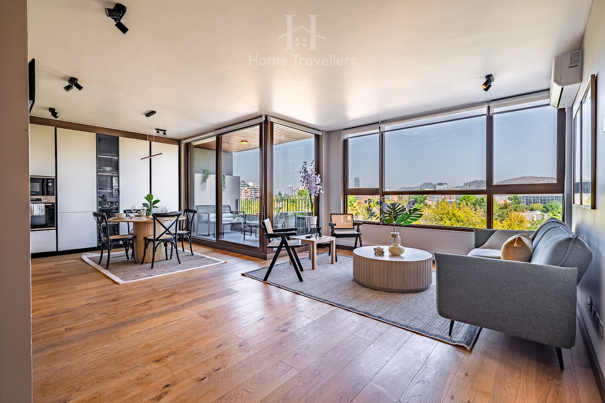 Mga hakbang mula sa mga shopping center ng Parque Arauco at Casa Costanera, matatagpuan ang modernong apartment na ito sa gitna ng Vitacura, isang residensyal na kapitbahayan na kilala sa katahimikan at mahusay na mga handog na gastronomic. Mayroon itong isang silid - tulugan, dalawang banyo, komportableng pinagsamang sala, kumpletong kusina, pribadong terrace at paradahan sa loob ng gusali. Naisip ang bawat detalye para makapag - alok sa iyo ng komportable, nakakarelaks, at naka - istilong pamamalagi.