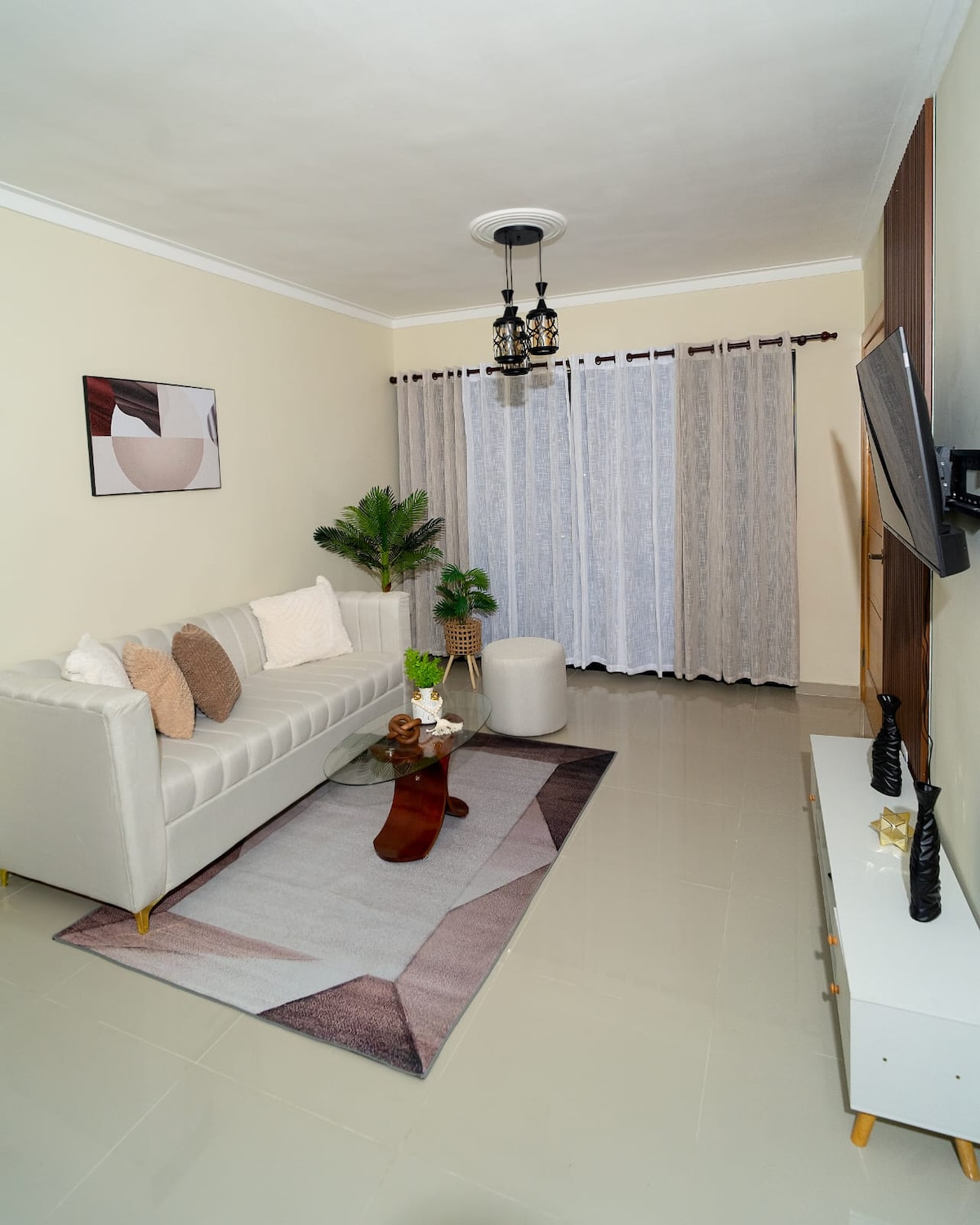 Ang property na ito ay kumikinang para sa katahimikan at seguridad nito, na matatagpuan sa isang gated na komunidad na may 24 na oras na seguridad, ang apartment na ito ay pinong nilagyan ng lahat ng kailangan mo para sa isang kahanga - hangang pamamalagi. Living room na may 65 - inch TV , mga lugar ng trabaho, kusinang kumpleto sa kagamitan, at parehong silid - tulugan na may mga air conditioner. Mga hakbang mula sa mall, supermarket, bangko, restawran.