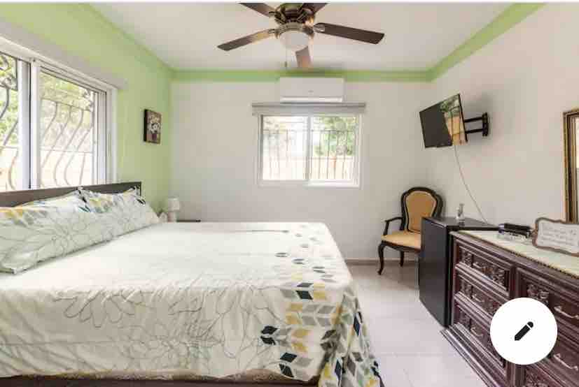 Pangunahin at prangka ang kuwartong ito. Angkop para sa badyet, perpekto para sa mga walang aberyang biyahero at backpacker. May kasamang: A/C, Mainit na tubig, TV, Netflix at Wi - Fi. - Property sa tabing - dagat/Main Strip. - Mas angkop para sa mga mahilig sa nightlife na nasisiyahan sa musika buong araw. - Walking distance mula sa mga bangko, supermarket, bar, restawran at lahat ng iba pa na maaaring kailanganin mo. Makakapamalagi ka sa gitna ng Boca Chica para sa murang presyong ito. Walang frills, walang luho. Walang mini fridge ATM.