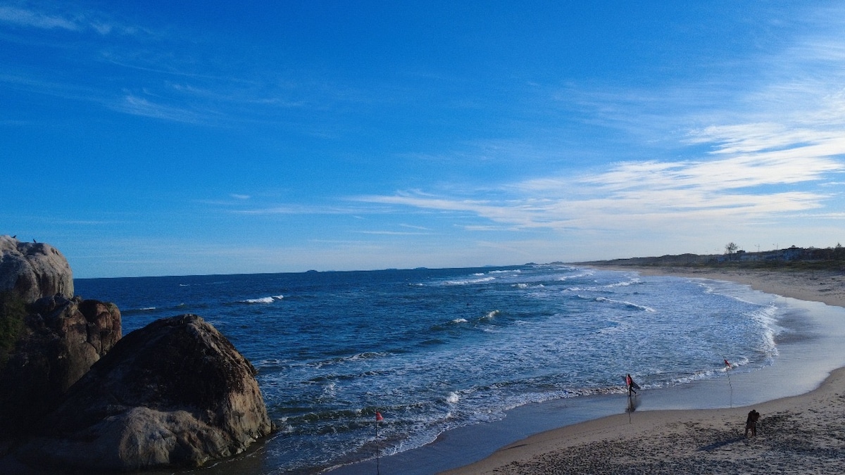 Faça uma pausa para relaxar neste oásis sereno. O aconchego na praia que cabe no seu bolso! Desfrute de um local tranquilo para descansar depois de um dia na praia! Casa dos fundos, feita para receber até 4 pessoas! Com cozinha completa, churrasqueira, quarto com uma cama de casal e uma cama beliche (cama no chão, como na foto), banheiro, sala com cozinha conjugada. O ar condicionado funciona perfeitamente para seu conforto. O carro pode ser estacionado na frete da casa de forma segura!