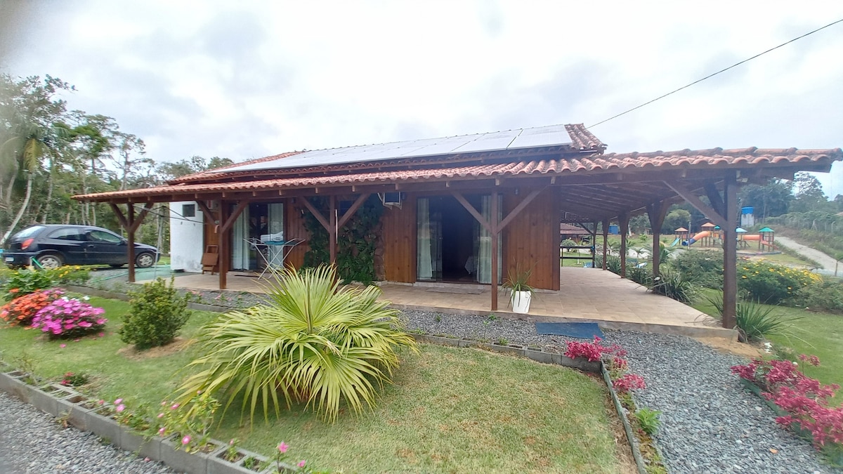 Playroom, palaruan ng mga bata (swing, slide, tunnel, walkway, climb), lawa, trail, batis, ilog, puno ng prutas para sa pag - aani, pag - aanak ng tupa, redneck na manok, pato at iba pang ibon. Isang perpektong lugar para sa mga naghahanap ng tahimik na lugar at pakikipag - ugnayan sa kalikasan. Tatlong henerasyon ang pribadong property. Matatagpuan ito malapit sa baybayin at sa mataas na lambak. Humigit - kumulang 1 oras mula sa Blumenau at 30 minuto mula sa baybayin. Matatagpuan ito sa Luiz Alves malapit sa Blue Strip Sports Club