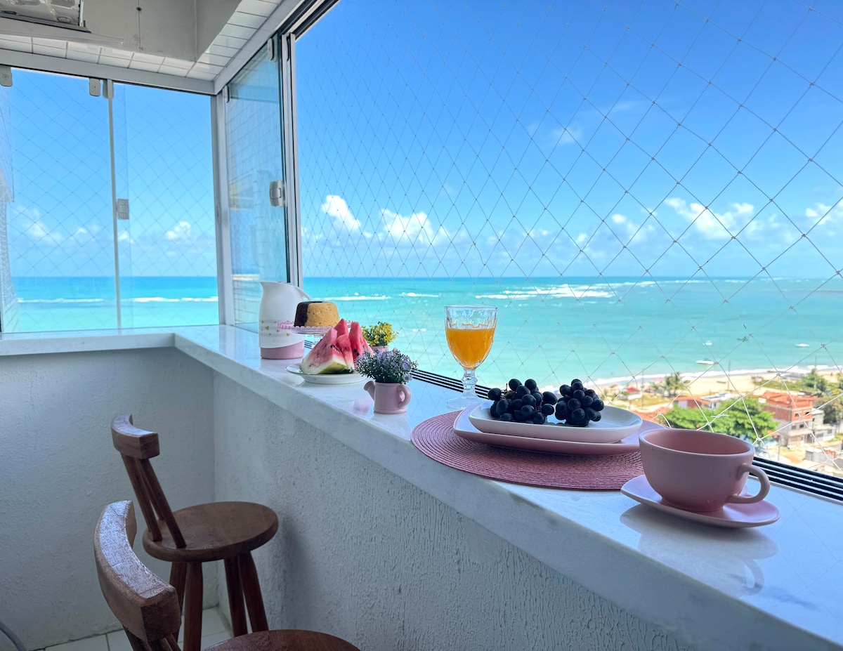 🐚 Maginhawa at kumpleto, sa tabi ng dagat, at may tanawin ng dagat mula sa lahat ng kuwarto. Hanggang 6 na tao ang tulugan, na may naka - air condition na kuwarto at sala. Nilagyan ng kusina, high - speed na Wi - Fi, Smart TV at balkonahe na may duyan. 🌊 May swimming pool, elevator, garahe, at 24 na oras na concierge ang gusali. Madiskarteng 📍 lokasyon, 20 minuto mula sa mga hindi malilimutang beach ng Antunes at Caminho de Moisés, sa Maragogi. Malapit sa magagandang restawran at supermarket, makikilala mo ang buong baybayin ng Alagoas at Pernambuco.