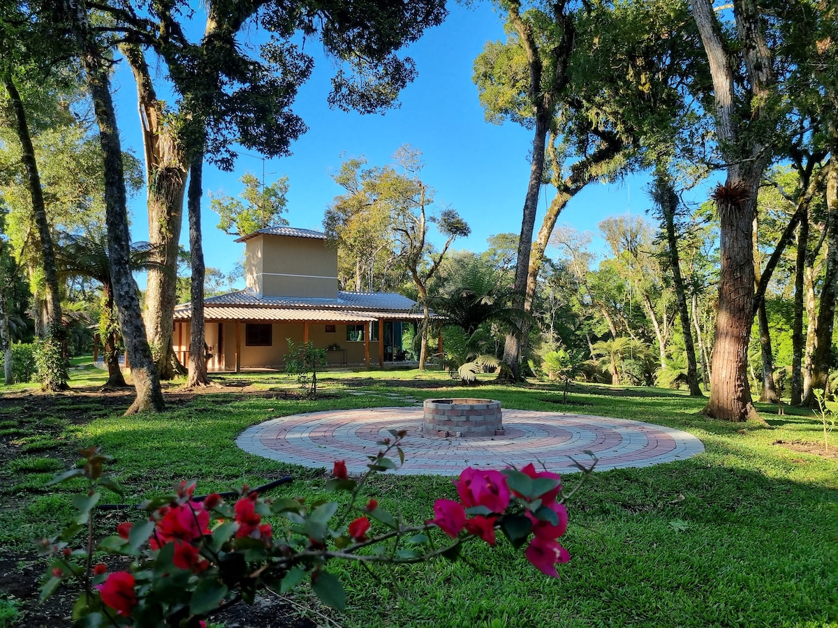 Halika at tangkilikin ang isang mapangalagaan na piraso ng Atlantic Forest, sa isang mapayapa at maginhawang kapaligiran. Naghihintay sa iyo ang Caliandra farm na bukas ang mga braso, 25 km lamang mula sa sentro ng Curitiba. Mananatili ka sa isang komportableng bahay na naglalaman ng sala na may fireplace, dining room, pantry, kusina, banyo, tatlong silid - tulugan, isa sa mga ito suite, sa isang lagay ng lupa na may 30 libong m² ng dalisay na kalikasan. Sa taglamig, tikman ang masarap na inihaw na pinion, na inihaw sa harap ng fireplace.