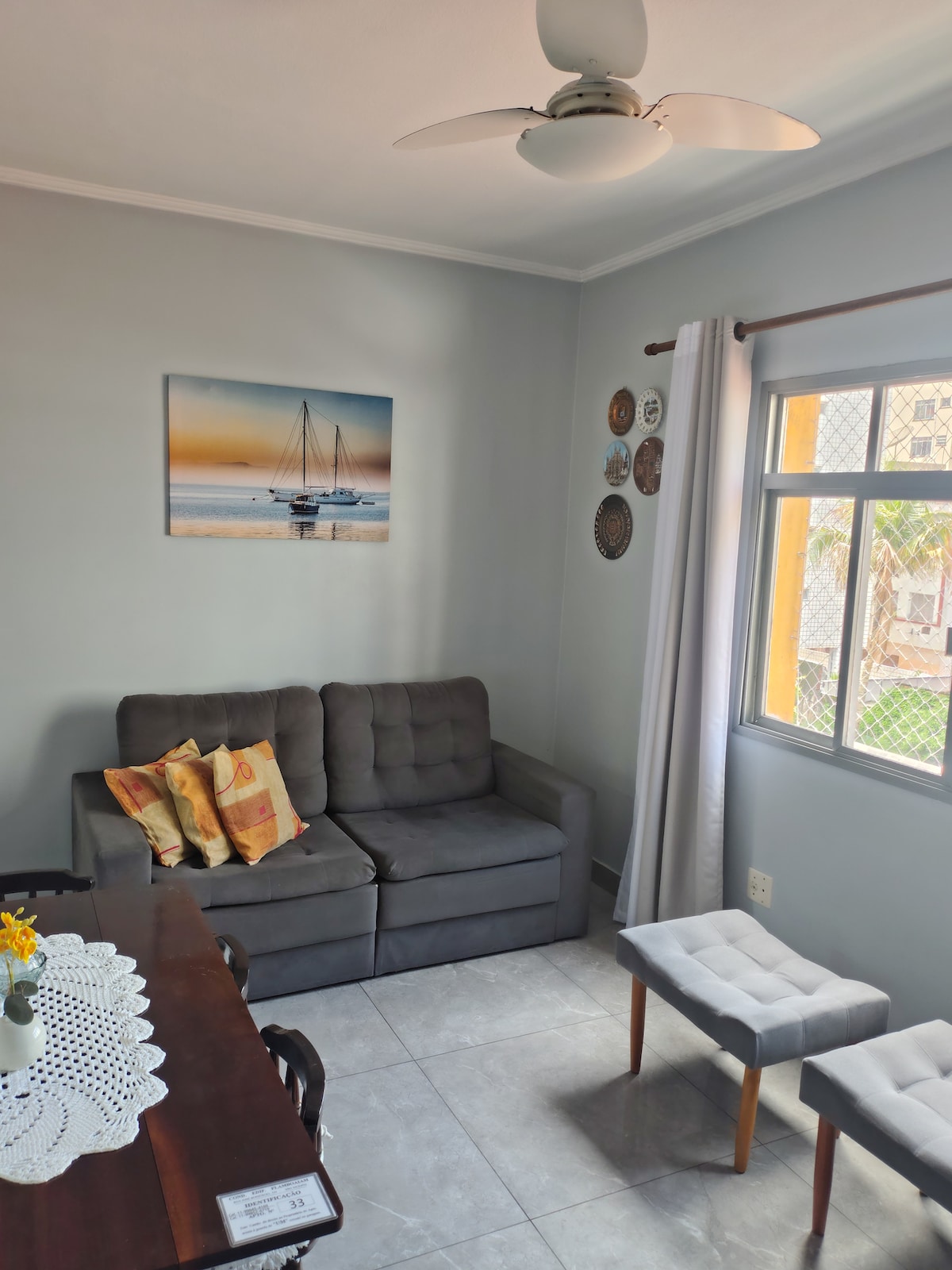 Apartamento tipo sala living, bem iluminado e arejado, com varanda espaçosa e vista para o mar em frente à Praia do Gonzaguinha em São Vicente. Portaria 24h e 1 vaga de estacionamento. Oferecemos pacotes de dom. à sexta através de oferta especial: 2 diárias (317$), 3 diárias (427$), 4 diárias (507$) e 5 diárias(607$), exceto feriados. Nas acomodações dispomos de ar condicionado split, quarto com cama de casal separado por porta de correr e um closet. Fornecemos roupa de cama e toalha de rosto.