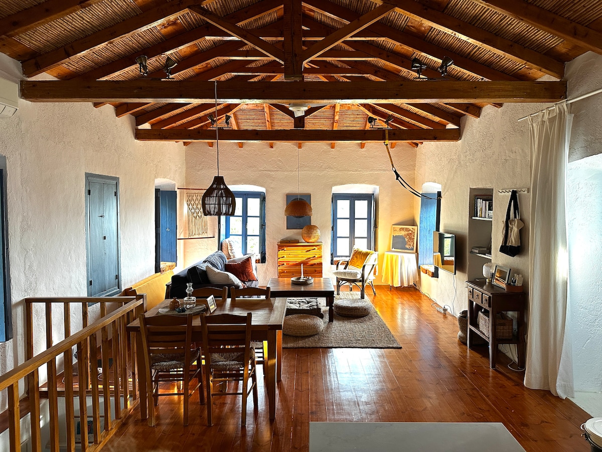 Live like a local in a peaceful traditional village! This spacious 140 sqm house offers stunning sea views, 4 enclosed bedrooms, a loft, and relaxing outdoor spaces. Just 8–10 minutes from the beach, it’s perfect for families or friends seeking a quiet, authentic stay. Book your stay at Three Skylights and enjoy an unforgettable experience.