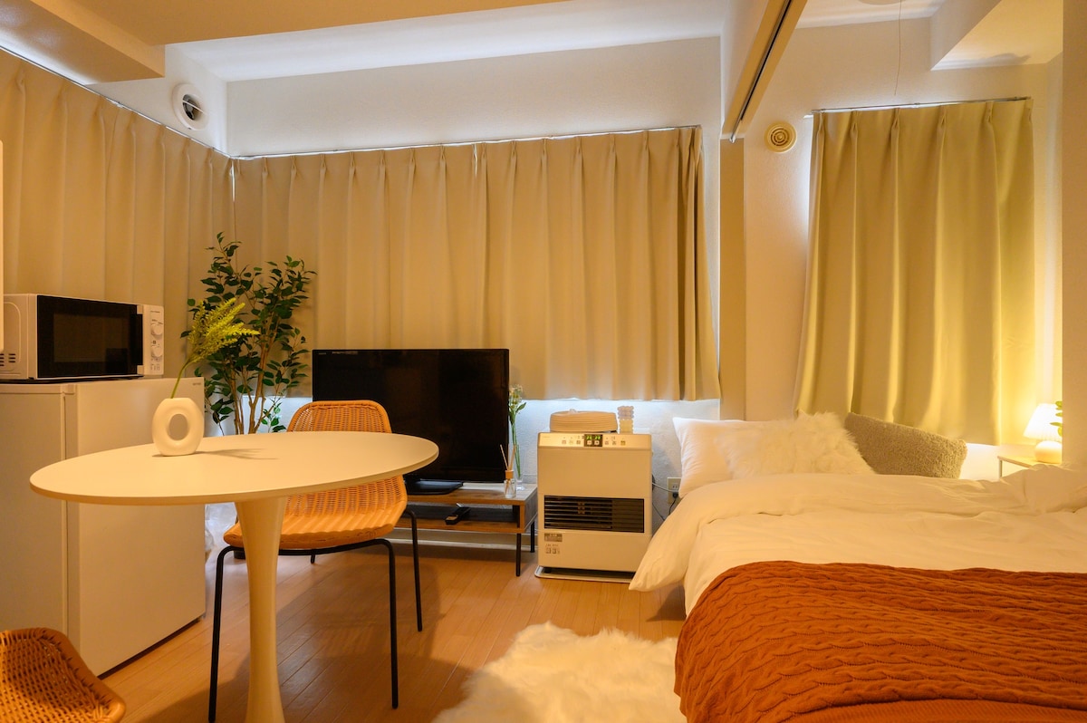 Nasa ikatlong palapag ang kuwartong ito, pero walang elevator kaya puwede kang gumamit ng hagdan.Salamat sa pag-unawa at pagbu-book🙏 9 na minutong lakad mula sa Nakajima-koen 🚇Subway Station 🚃City Tram (Tram) Yamanoshi 9-jo Station 4 na minutong lakad 🚌Bagong Chitose Airport Direct Bus Stop 10 minutong lakad * Walang pribadong paradahan, pero may ilang may bayad na paradahan na 1-5 minutong lakad lang🚗 10–15 minutong lakad ang layo ng Susukino area 15 minutong lakad ang layo ng Subway Susukino Station Tanukikoji 15 minutong lakad Nasa maigsing distansya man ang lokasyon sa Susukino, tahimik ang paligid ng apartment!Kapayapaan ng isip para sa mga kababaihan✨ Magrelaks sa sala na may banayad na sikat ng araw at sa kuwarto na may king size na mababang higaan🪴 Magsimula sa nakakarelaks na kape sa umaga, at manood ng mga pelikula at makipag‑usap sa malabong liwanag sa gabi… Mag‑enjoy kayo sana nang magkasama.