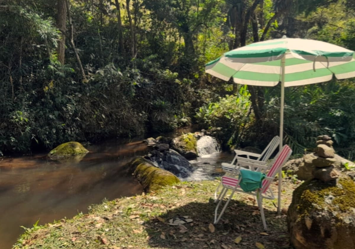 Matatagpuan ito 5 km mula sa sentro ng lungsod, sa distrito ng Santa Bárbara. Madali ang pagpunta, pinapayagan ang trapiko ng anumang sasakyan na darating sa lugar na 20,000 m², napapalibutan ng mga screen at may pribadong talon na 50 m mula sa bahay, malawak na hardin, mga balkonahe na may magandang tanawin ng mga bundok, deck na tinatanaw ang talon at ganap na katahimikan. Mabilis ang internet, ginagarantiyahan ang kalidad para sa pag-aaral nang malayuan, mga online meeting, at pagtatrabaho sa bahay.