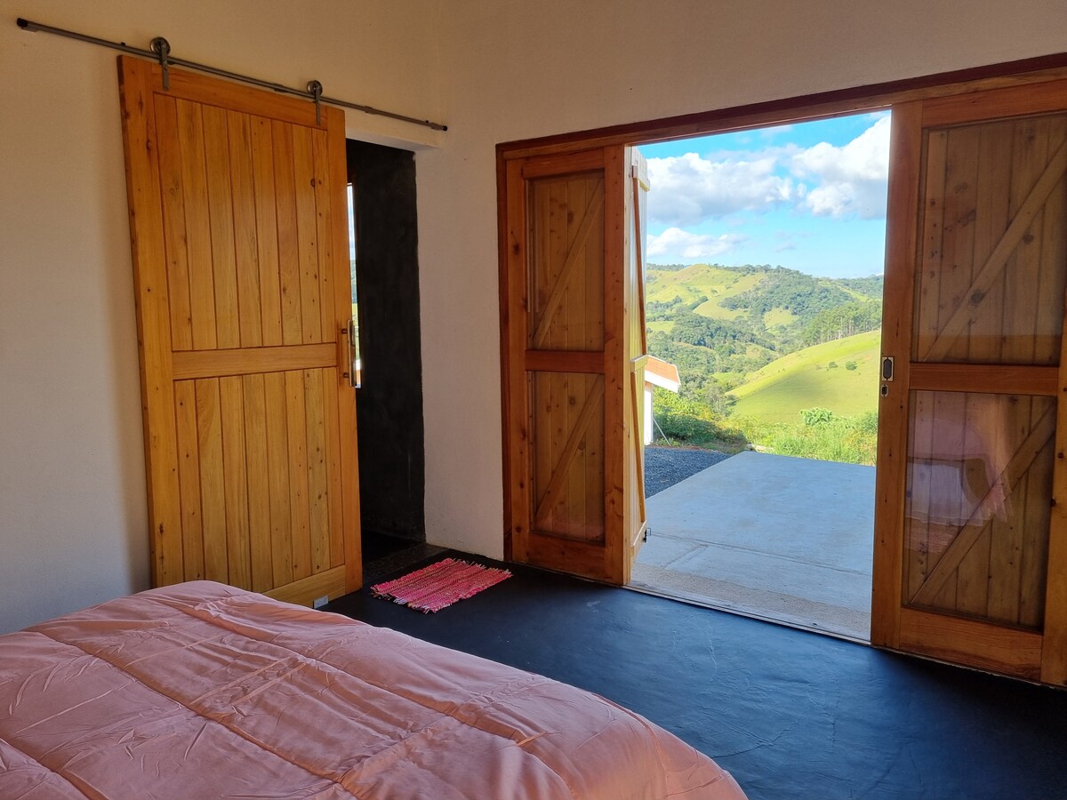 Espaço em área rural, rodeado por extensa área verde, paisagem espetacular da serra da Mantiqueira, com vista privilegiada da Pedra do Baú. Construção sustentável c pegada rústica, microcasa confortável e funcional. Cabana com ambientes integrados, loft, e banheiro c vista da paisagem. Trilhas, horta orgânica e queda d’água no local. Para casais, diversos, com ou sem filhos e ou amigas(os) que apreciam a natureza e a tranquilidade do campo. Região com muitas opções turísticas.