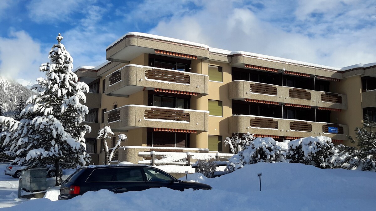 Matatagpuan ang komportableng apartment na may 2.5 kuwarto sa ikalawang palapag sa isang tahimik at maaraw na lokasyon sa Davos Platz. Mainam ang apartment para sa mga mag - asawa o maliliit na pamilya. May balkonaheng may araw at magagandang tanawin ng Jakobshorn at paligid. Hindi namin binibigyang-pansin ang pagiging moderno o tradisyong Alpine. Higit pang kaginhawaan, kagalingan, at kalinisan. Pagdating at pakiramdam na parang nasa bahay ang motto namin.
