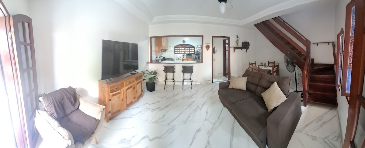 Ang Vilatur ay isang distrito ng Saquarema, isang resort sa tabing - dagat na may lugar ng proteksyon sa kapaligiran. Ang tirahan ay may barbecue area na may mga mesa at upuan, swimming pool, 7500 L ng cistern na ginagamot ng tubig, espasyo para sa 3 kotse sa panloob na lugar, pinggan at plastik na baso para sa pool area. 10 minutong lakad mula sa beach. 10 minutong biyahe papunta sa Itauna at Bacaxá. Para sa higit pang bisita, nagbibigay kami ng mga kutson at kutson. Kabuuang 8 bisita. Bahay na may alarma. Garahe na may awtomatikong gate.