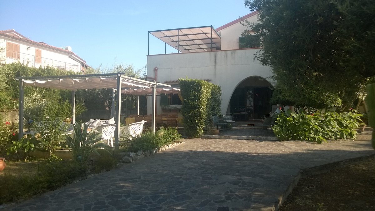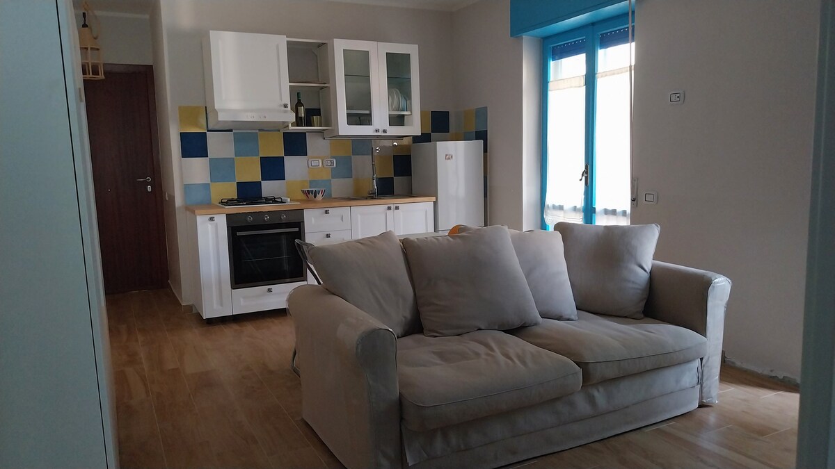 Nag - aalok ang bagong na - renovate na apartment ng tahimik na pamamalagi na malayo sa trapiko at mga pag - crash sa araw at gabi. Mayroon itong malaking terrace na may kusina at shower sa labas, sulok ng relaxation, payong at sun lounger kung saan matatanaw ang parke ng Pollino. Sa loob ng sala na may kumpletong kusina, mesa, TV, sofa bed 2. Tela. Banyo na may shower at washing machine. Double room. Available ang pampublikong serbisyo sa pamamagitan ng telepono nang may bayad Mga buwan lang ng tag - init ang SHUTTLE Special - staz Scalea. TAXI