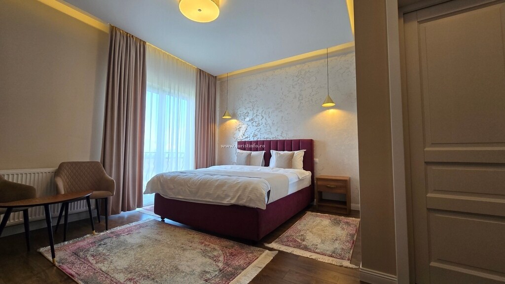 Unitatea de cazare pe care o găzduim este noua, finalizată la sfârșitul anului 2022 și este formată din 6 dormitoare, 2 dintre ele cu baie proprie și o baie comună pentru restul oaspeților. Piscina funcționează în intervalul 1MAI-1OCTOMBRIE, este încălzită cu ajutorul unei pompe de căldură, temperatura apei variază între 27-30 grade, în funcție de condițiile meteorologice. Jacuzzi-ul încălzit va permite sa va bucurați de priveliște indiferent de vremea de afara.