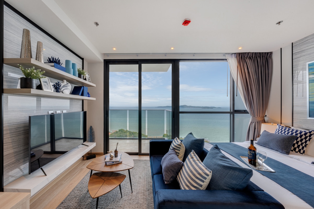 40floor 26start} .m. studio (king bed), na may magandang tanawin ng dagat Ang aming kuwarto ay nasa Unixx Condominium. - 2 minutong paglalakad mula sa mga abalang kalye para sa masarap na lokal na pagkain - 7 minutong paglalakad mula sa pangunahing pantalan at gocart track. - 10 min sa Walking street. - 20 minutong paglalakad papunta sa Beach - 2 swimming pool/Sauna/Gym - Magandang Tanawin sa hardin ng kalangitan - 31 km papunta sa U - Tapao Rayong - Piazza International Airport.