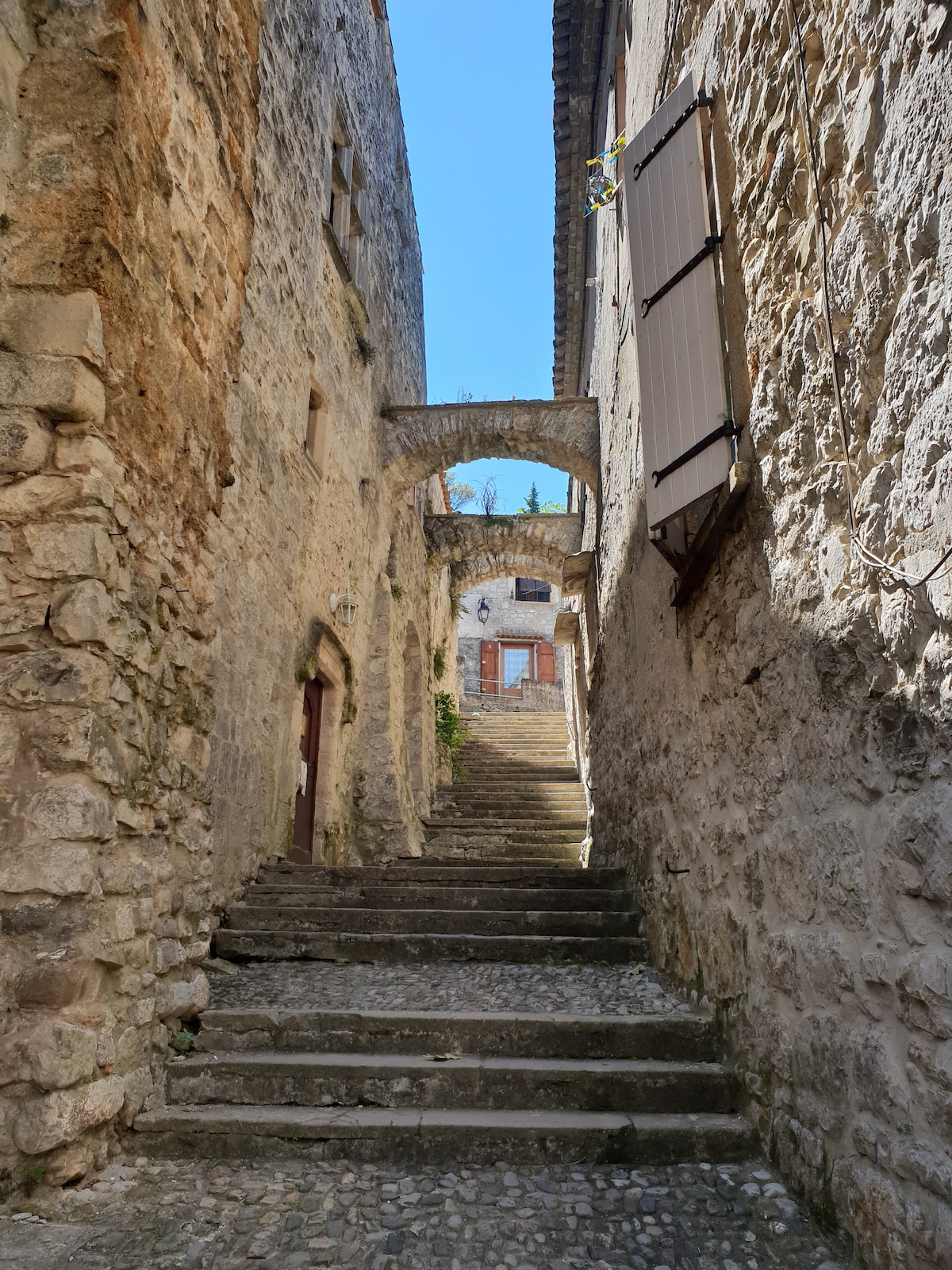 Magpahinga nang ilang araw sa napakasayang studio na ito at sa may lilim na terrace nito, na matatagpuan sa makasaysayang sentro ng nayon. Ang napaka - tahimik na apartment ay nananatiling cool sa tag - init. Access lang ng pedestrian. Bukas ang mga tindahan ng baryo sa buong taon pati na rin ang mga bar at restawran. Sa panahon ng tag - init, maaari mong tamasahin ang mga pagdiriwang (mga konsyerto, eksibisyon) at hanapin ang mga workshop ng artist. Mainam para sa mga hobbyist ng mga paglalakad at pagha - hike. Maraming swimming spot sa malapit.