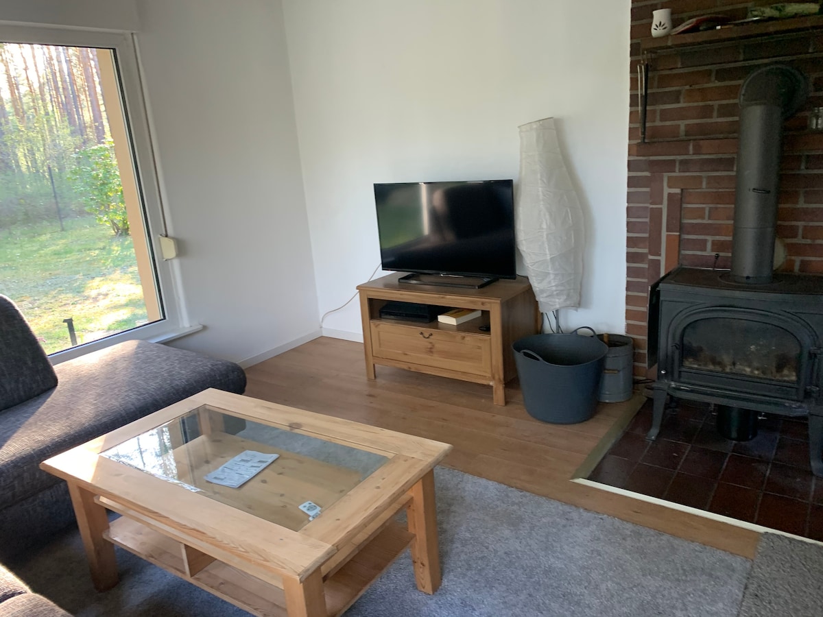 Das Waldhaus EICHHÖRNCHEN liegt direkt am Waldrand der Dübener Heide. Es ist ein hochwertig ausgestattetes, voll unterkellertes Holzblockhaus mit ca.120 m² Wohnfläche für 6 Personen. Dazu gibt es eine Garage und Platz für 4 PKW sowie zwei Terrassen. Im Keller ist eine Sauna und ein Ruheraum mit Dusche, der jedoch auch zum Übernachten geeignet ist (Doppelbett). Im Dachgeschoss gibt es zwei Schlafräume mit Smart-TV, sie sind durch einen Vorhang getrennt. Der Wohnraum hat einen Kamin.