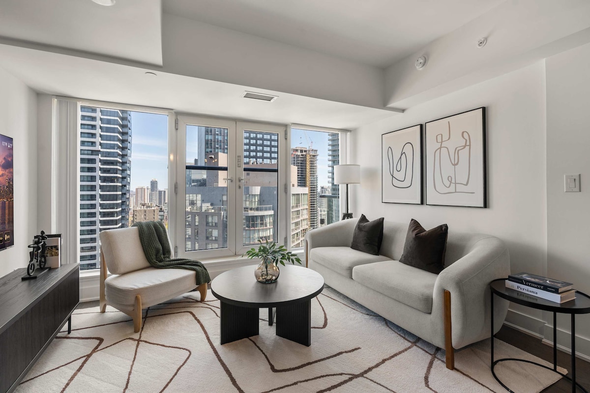 Stay in the heart of downtown Toronto in this modern one-bedroom condo just steps from the CN Tower, Rogers Centre, and the waterfront. The unit features a comfortable queen bed in the bedroom and a sofa bed in the living room, perfect for couples or small groups. Enjoy skyline views through floor-to-ceiling windows or relax on the private balcony. The condo includes a full kitchen, smart TV, high-speed Wi-Fi, and in-suite washer and dryer. Guests also have access to a gym and outdoor pool .