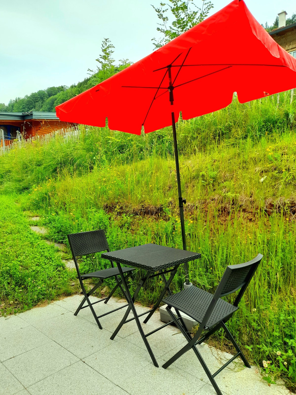 Pinagsasama ang shower at dagdag na pasilidad sa paghuhugas. Ang espesyal na hiyas ay ang aming sauna, na matatagpuan din sa antas na ito. Available din ang maliit na kusina na may maliit na kabinet sa kusina, hot plate, at pinakamahalagang kagamitan. Maglakad nang ilang hakbang sa likod ng bahay, may magandang terrace na naghihintay sa iyo para sa mga komportable at balmy na gabi. May hagdan na humahantong pababa sa creek. Sa itaas na bahagi ay ang silid - tulugan na may double bed at ang guest bed.