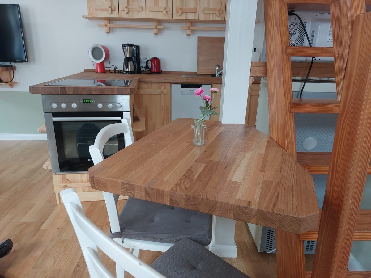 Individuell mit viel Liebe gestaltet mit allem Drum und Dran. Ein unglaublich schöner Ausblick auf die Schlei, die Vogelwelt und Boote, die vorbeischippern. Braucht Ihr etwas besonderes, fragt nach. **Die untere Wohnung mit Terrasse kann dazu gebucht werden** Natürlich wird die Wohnung bei Mieterwechsel gründlich geputzt, bitte erwartet aber keinen Hotelstandard.