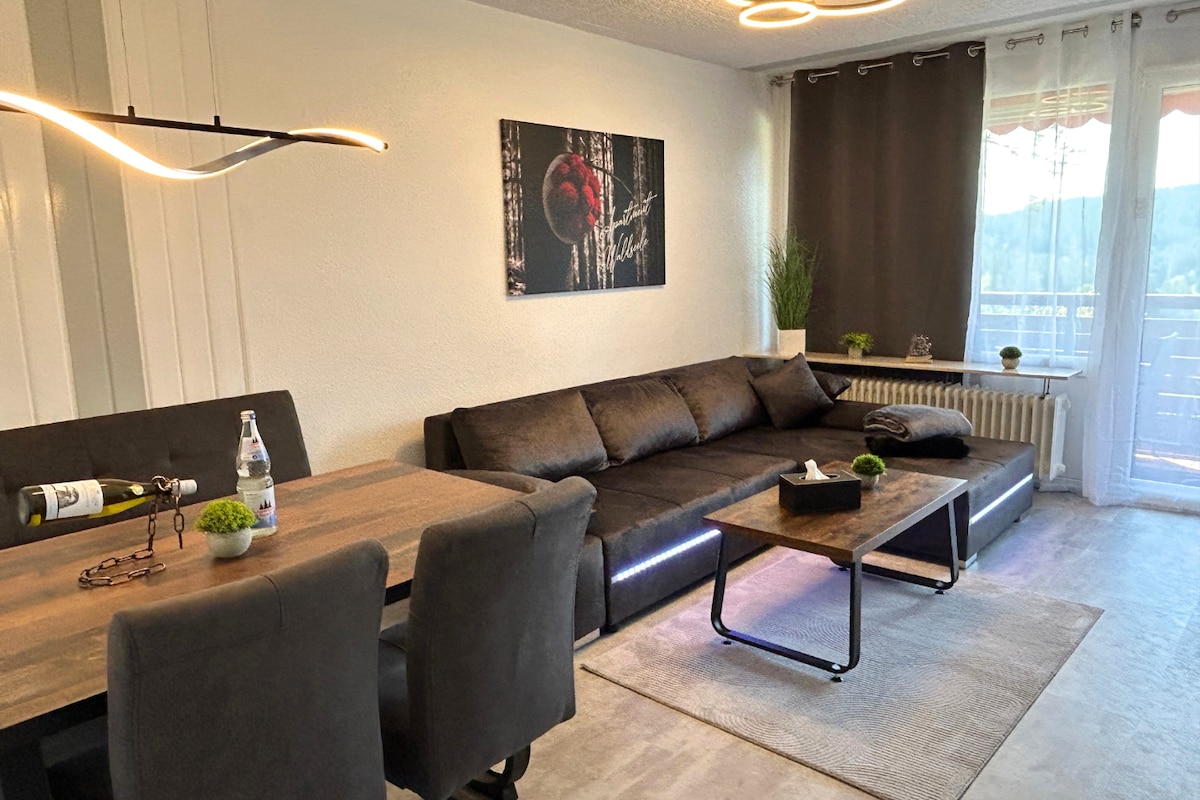 Mit viel Liebe neu renoviertes 2-Zimmer-Apartment mit herrlichem Panoramablick im Herzen des Schwarzwaldes. Gemütlicher Wohn-Essbereich mit 65Zoll TV, voll ausgestattete Küche mit Induktionsherd. Eigener Südbalkon mit herrlichem Panoramablick und Lounge lädt zum Relaxen ein. Indoor-Pool, Sauna, kostenloses WLAN, Tennis- und Spielplatz, Tischtennisplatte und Tischkicker, kostenloser Parkplatz. Hunde sind ebenfalls herzlich willkommen.
