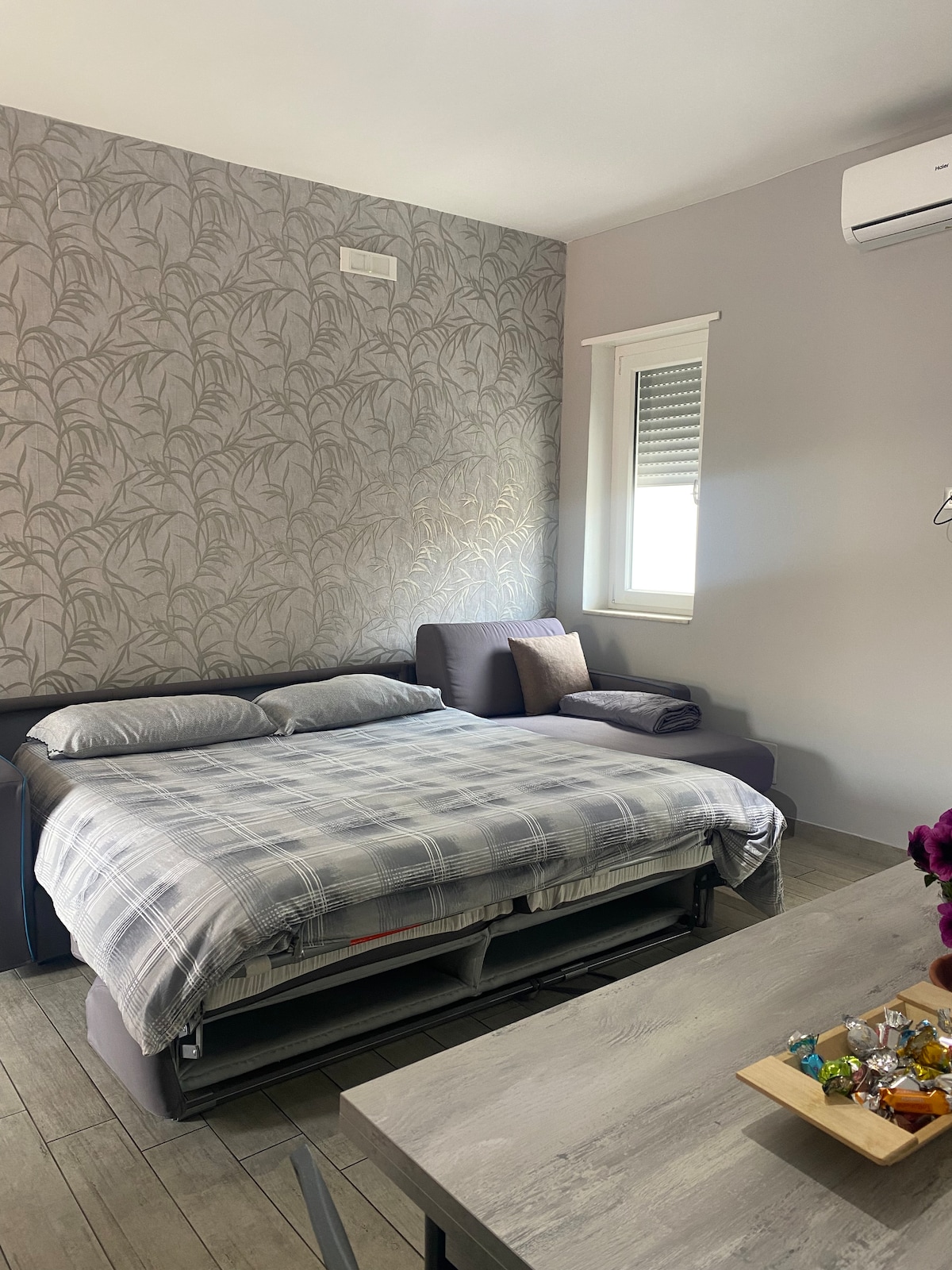 Our apartmens are right on the beach, you walk ou from the door on the shore and the beach is there, calm quiet peaceful, a gorgeous sea to enjoy! A Big balcony where to have breakfast, dinner or simply read a book faces an impressive sea view. Air conditioning, wi-fi, french beds and a well equipped kitchen to live your vacation the best way. Restaurants, coffee bars, promenades, boat rental to explore our coasts, a bike park to ride around our hills, a vacation you'll never forget!