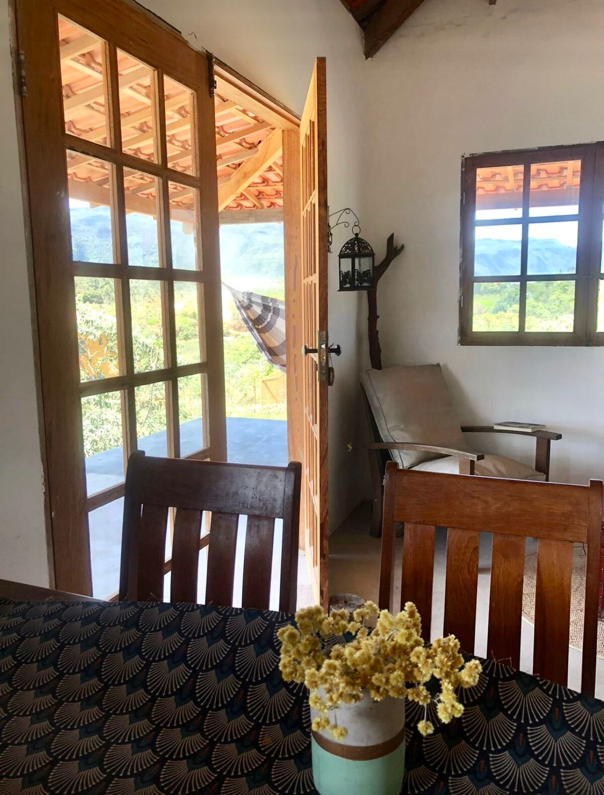 4 na Pribadong chalet sa mataas na pamantayan Komportableng matutuluyan para sa 3 tao 1 double bed (na may magnetic mattress), at 1 pang sofa bed Smart TV na may koneksyon sa Internet Kumpletong kusina na may mga kasangkapan at fixture. Hindi kami naghahain ng mga pagkain. Tanawin ng Morrão at Serra da Cachoeira da Fumaça Stone Fire pit Pinakamagandang lugar para makita ang mga bituin Paradahan para sa Alagang Hayop na Friendly Wifi Air conditioning Warm shower Hair dryer