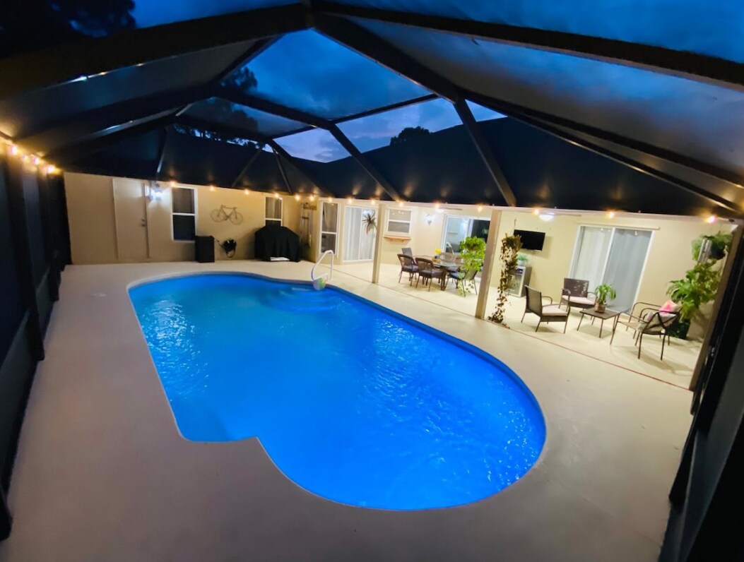 Maligayang pagdating sa aming magandang pool home! Ganap na inayos ang property na ito at may gitnang kinalalagyan 10 minuto lang ang layo mula sa mga beach. 8 minuto lang ang layo ng airport at 5 minutong biyahe lang ang layo ng downtown. Ang kusinang kumpleto sa kagamitan ay may lahat ng kailangan mo upang magluto ng masarap na pagkain, dalawang lugar ng trabaho na may mabilis na wifi. Mga kagamitan sa pag - eehersisyo, pati na rin ang washer at dryer. Sa labas, makikita mo ang isang magandang pool kung saan maaari kang magrelaks at magbabad sa araw ng Florida. Mayroon din itong BBQ grill at patio dining area.