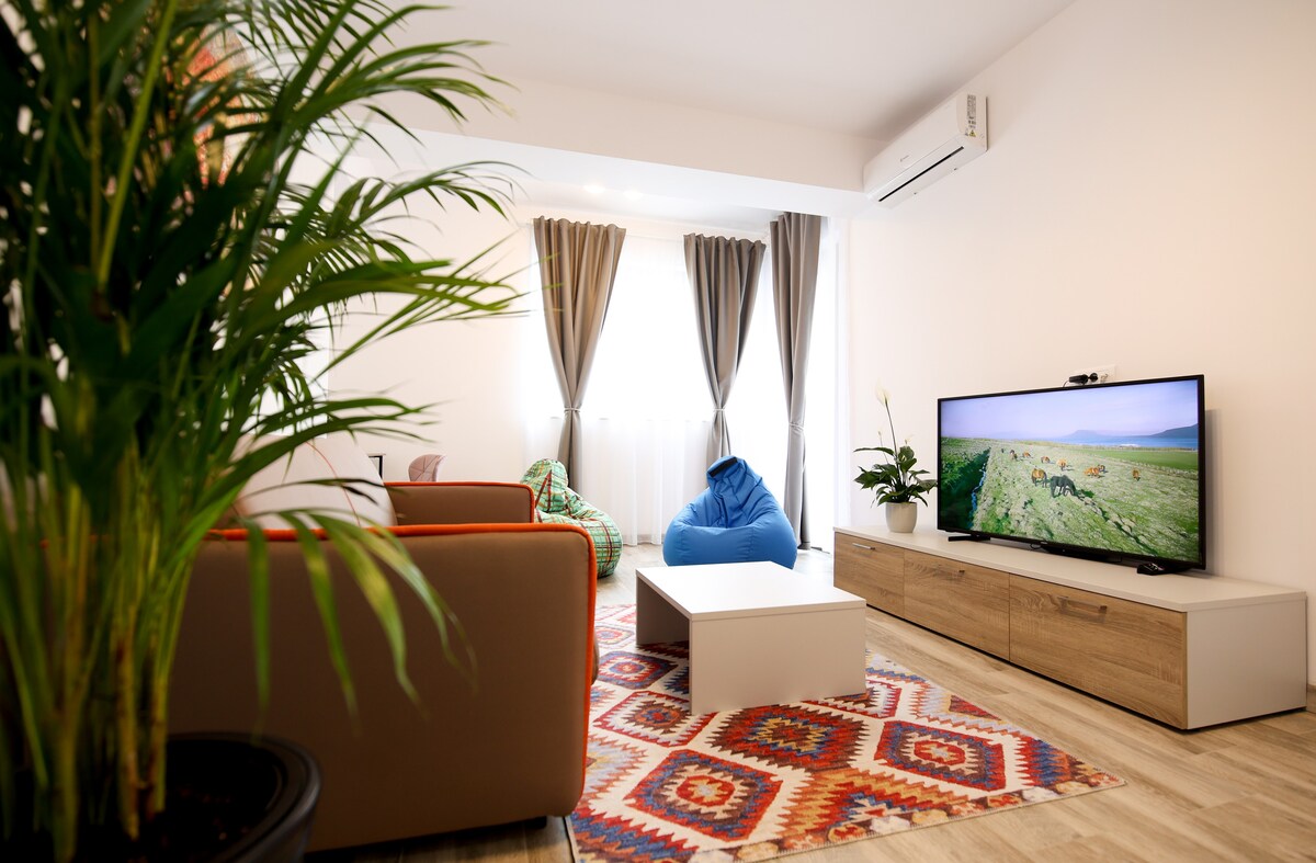 Nag - aalok ang Alia Apartment ng modernong kaginhawaan sa isa sa mga pinakaprestihiyosong residensyal na complex sa Bucharest, ilang hakbang lang ang layo mula sa Arcul de Triumf. Matatagpuan sa isang premium na gusali na may 24/7 na seguridad at access sa elevator, nagtatampok ang apartment ng maluluwag na interior, malalaking bintana, at pribadong balkonahe. May access din ang mga bisita sa swimming pool ng complex, kaya mainam ito para sa mga panandaliang pamamalagi at pangmatagalang pamamalagi. Isang perpektong halo ng kagandahan, pag - andar, at katahimikan sa lungsod.