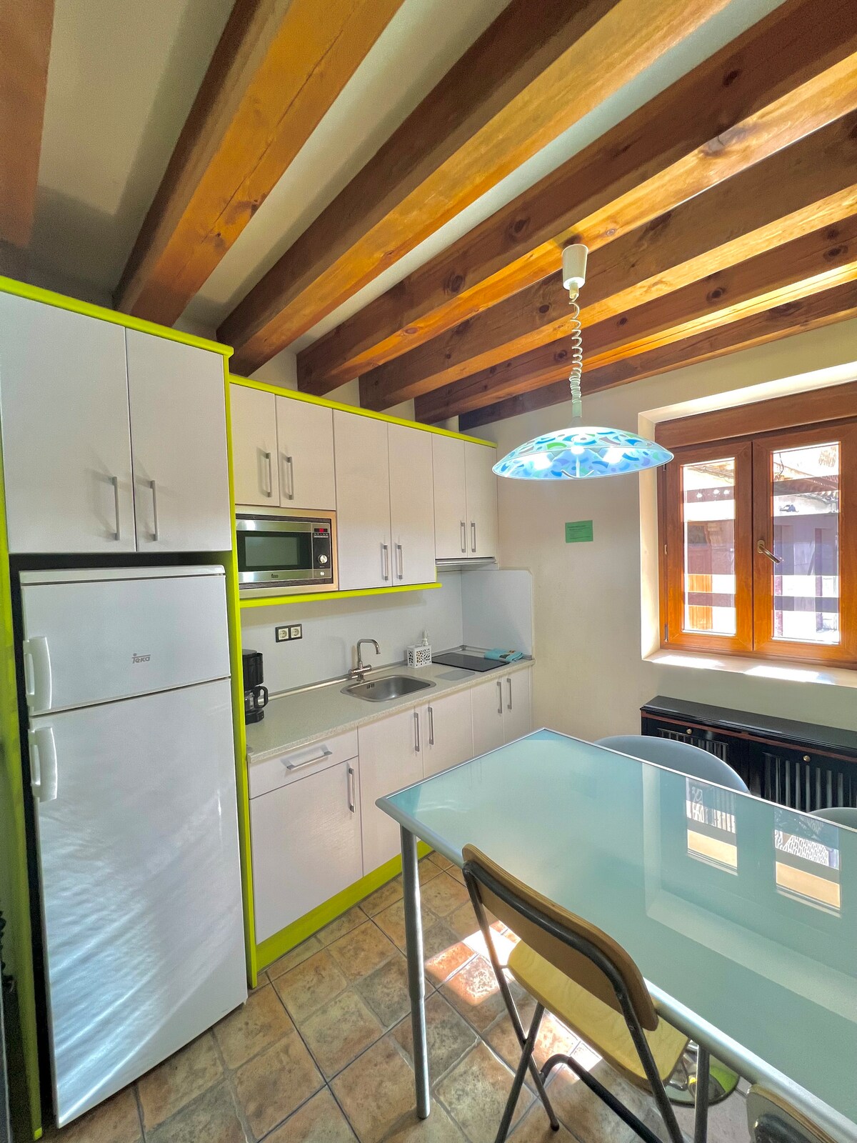 Binubuo ang lugar ng dalawang apartment na may kahati sa hardin. Ang unang lugar, na siyang pangunahing bahagi ng bahay, ang tatangkilikin nila sakaling may mga reserbasyon ng 4 na bisita at binubuo ito ng buong banyo, kuwartong may double bed, at bukas na espasyo na may kusina at sala na may sofa bed na 1.35. . Kapag 5 o 6 ang reserbasyon, masisiyahan ang mga bisita sa pangalawang apartment na may toilet at higaan na 1.35. . Karaniwan ang patyo para sa parehong tuluyan, pero pribado lang ito para sa mga bisita ng tuluyan.