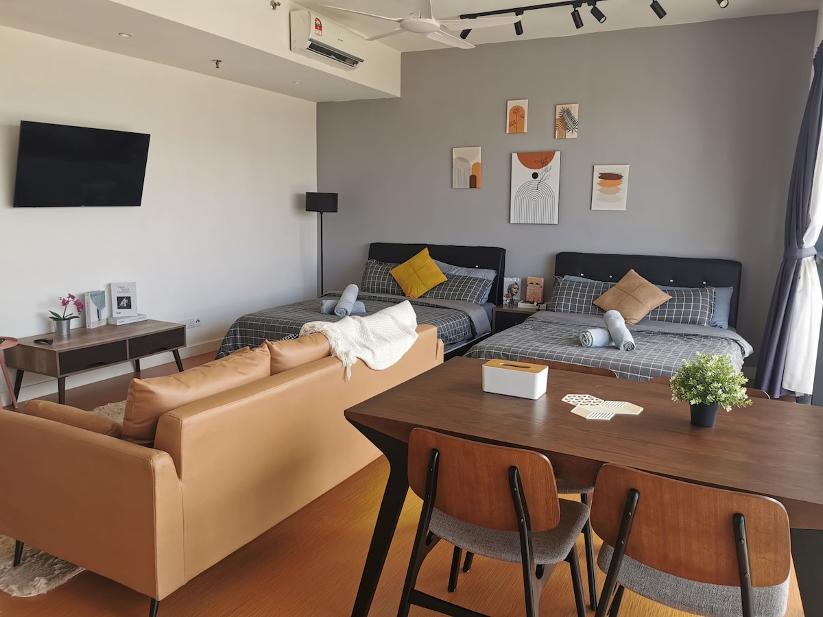 Maligayang pagdating sa aming naka - istilong at komportableng yunit, na matatagpuan sa gitna ng Petaling Jaya, na ginagawa itong perpektong batayan para sa iyong pamamalagi. Pinagsasama ng maingat na idinisenyong tuluyan na ito ang init ng solidong muwebles na gawa sa kahoy sa moderno at pang - industriya na kagandahan ng semento na naka - istilong. Narito ka man para sa negosyo o paglilibang, nag - aalok ang yunit na ito ng perpektong balanse ng kaginhawaan at estilo. Masiyahan sa isang kontemporaryong tuluyan na malayo sa bahay, na may bawat detalye na maingat na ginawa para matiyak ang iyong kaginhawaan at pagpapahinga.