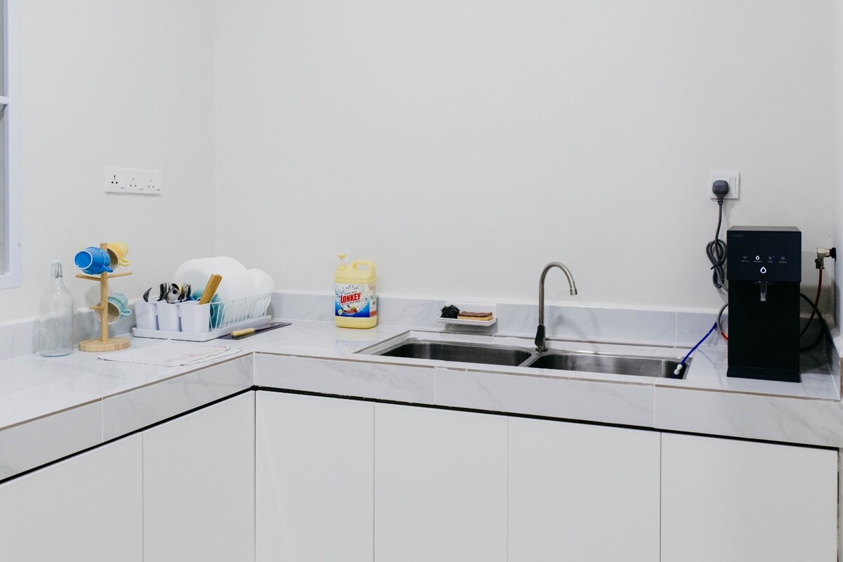 Lugar ng bayan, Johor Bahru - Single Storey Terrace Corner Lot - Kumpleto sa Kagamitan - Angkop para sa pagtitipon kasama ng mga kaibigan at kapamilya o kasal - 4 na maluluwang na naka - air condition na kuwarto na may pinaghahatiang banyo - Security Camera 24/7 Sala - Smart TV + remote control - Walang limitasyong Internet WiFi - Sistema ng Sofa + Karaoke Kusina - Refrigerator, rangehood, dining table at upuan - May mga kagamitan sa pag - iilaw at pagluluto (Water purifier, induction cooker, microwave, pan, kaldero, mug..) Silid - tulugan - 4 na silid - tulugan