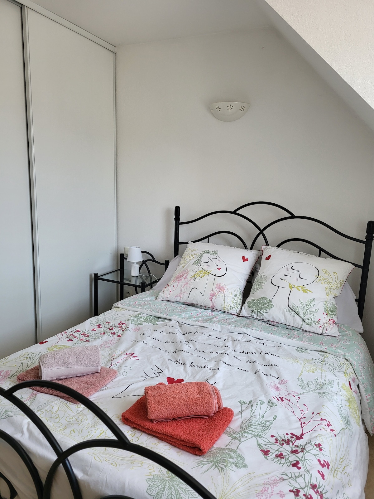 Halika at tuklasin ang magandang na - renovate na 40 m2 apartment na ito sa Vannes. May perpektong lokasyon sa pagitan ng sentro ng lungsod (15 minutong lakad) at mga pangunahing access (istasyon ng tren 15 minutong lakad, expressway). Sa ikalawa at tuktok na palapag ng isang maliit na tirahan, makikita mo ang isang kumpletong kagamitan at kumpletong sala na naliligo sa sikat ng araw, isang duplex na silid - tulugan na may desk area at imbakan,isang renovated na banyo, isang hiwalay na toilet, isang balkonahe sa timog - timog - kanluran na nakaharap para masulit ang araw, at isang paradahan.