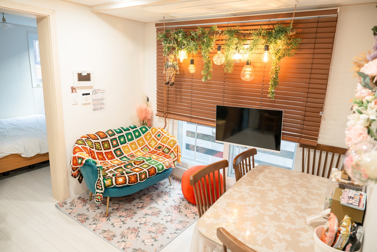 🏡 Maaliwalas na Bahay na Gawa sa Mantikilya Puti, kahoy, at kulay dilaw na parang mantikilya na komportableng bahay na may dalawang kuwarto. Matatagpuan sa tahimik at komportableng lugar ng tirahan, 7 minutong lakad mula sa Hwagok Station Magandang lugar ito para sa paglalakbay, mga business trip, at mga munting pamamalagi. [Mga amenidad] Daiso, Olive Young, Life Net sa loob ng 5-10 minutong lakad, May mga coin‑operated na singing room, grocery store, at iba't ibang restawran, kaya magiging komportable ang pamamalagi mo. [May transportasyon] Malapit sa ✔Gimpo Airport at Incheon Airport - Gimpo Airport Bus 6629 30 minuto/Subway Line 5 - Incheon Airport Bus 6014 45 min/Airport Railroad + Linya 5 ✔Subway Line 5: Mabilis na koneksyon sa Yeouido, Gwanghwamun, Jongno, atbp. Bus ✔line papuntang Hongdae [Mga kalapit na landmark] ✔ Seoul Botanical Garden, Wujangsan Park, Nanji Hangang Park, ✔ Seoul World Cup Stadium, Gocheok Sky Dome, Sangam DMC ✔ Yeouido, Hongdae, Mapo [Pinapayagan ang mga alagang hayop] ✔ Kailangan ang paunang pagtatanong (Kung may masira o ma‑contaminate, maaaring humingi ng kabayaran) Isang maliit pero maginhawa at abot‑kayang tuluyan, Magrelaks sa Cozy Butterhouse ☀️