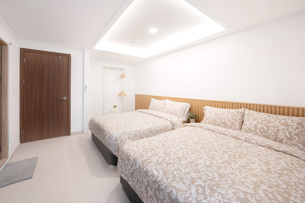 ๐ฟ Harujae โ Urban Emotional Accommodation Deluxe -1 queen bed -Ang kuwartong ito ay angkop para sa mga dayuhang turista, kaibigan, at magkasintahan.๐ซ Awtomatikong itatalaga ng sistema sa 4 na kuwarto ๐ฟevent na bukas sa lahat๐ฟ 10% karagdagang diskuwento para sa 3 gabi o higit pa 13% karagdagang diskuwento para sa 5 gabi o higit pa Awtomatikong ina-adjust ang presyo Perpektong lokasyon sa gitna ng Seoul, 4 na minuto lang ang layo mula sa Chungmuro Station at Euljiro 3 - ga Station๐ถโโ๏ธ, na may maigsing distansya papunta sa Myeongdong at Hipjiro! ๐ฒ Mainit na interior na gawa sa kahoy at sariwang sagana Ang mga kuwartong may mga ๐๏ธ handmade na higaan at de - kalidad na 60 thread count duck feathers ay nagbibigay ng espesyal na pahinga para sa mga pamilya, mag - asawa, at dayuhang biyahero. โจ May ๐ฟtransportasyon - Airport bus 6001, 6015 5 minutong lakad mula sa Chungmuro Station, Hanok Village, at Korean House - Subway 4 na minutong lakad mula sa Chungmuro Station sa Lines 3 at 4 4 na minutong lakad mula sa Euljiro 3 - ga Station sa Mga Linya 2 at 3 10 minutong lakad mula sa Euljiro 5 - ga Station sa Mga Linya 2 at 5 Walang elevator Hindi ibinibigay ang ๐ paradahan.