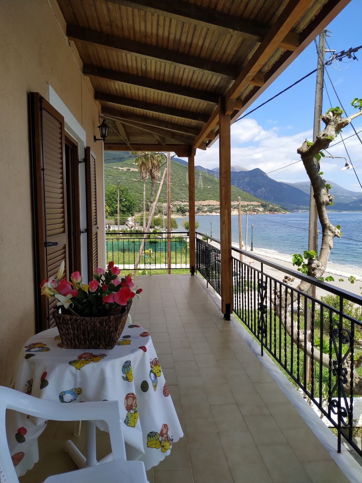 Ένα διώροφο, πλήρως εξοπλισμένο οίκημα με μοναδικό μπαλκόνι που βλέπει όλον τον Κορινθιακό και μια είσοδο που οδηγεί απευθείας στην παραλία. Φιλοξενούμε άνετα 3 άτομα για μοναδικές διακοπές πραγματικά δίπλα στο κύμα.