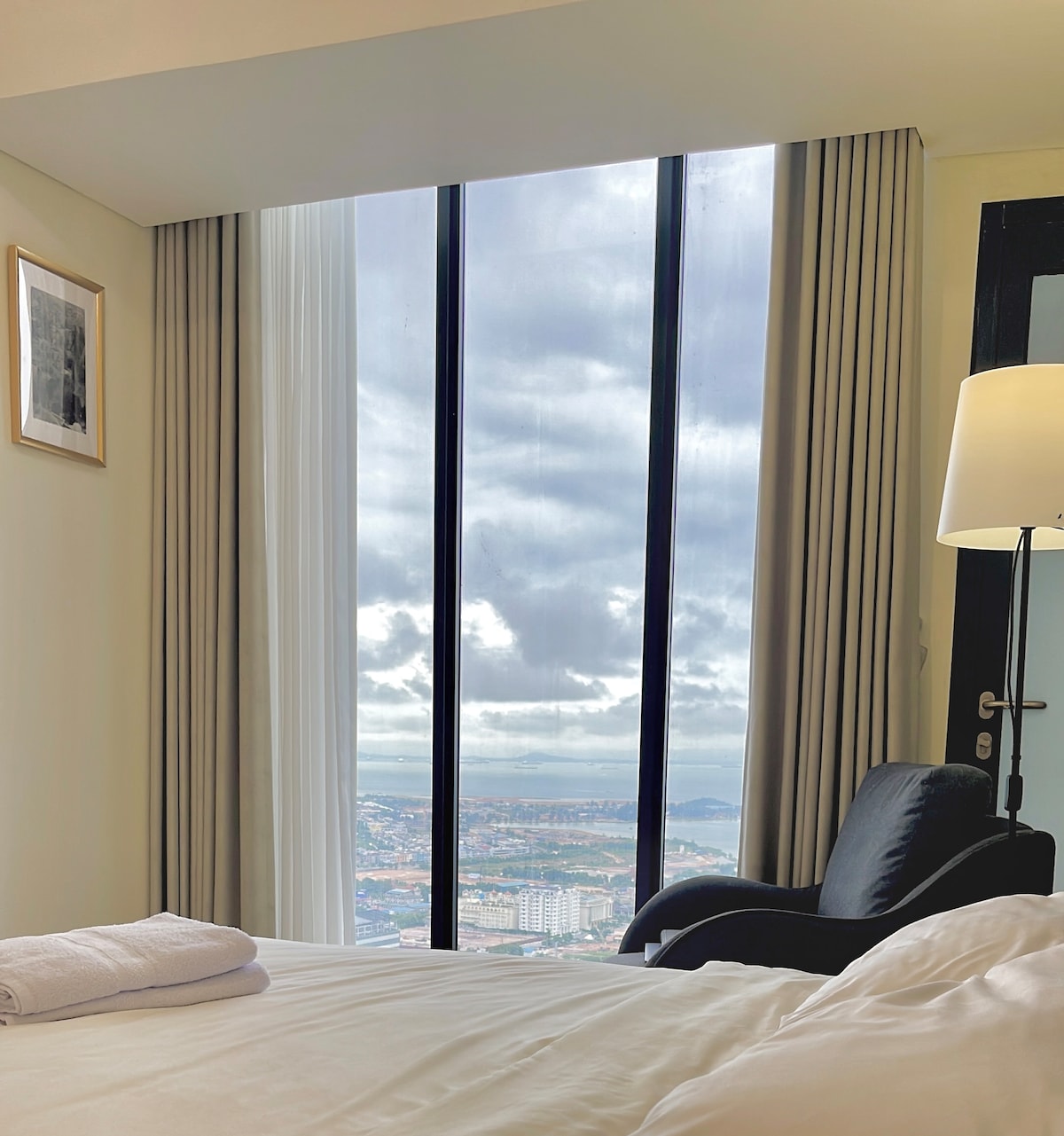 Dahil nasa ika -51 palapag ang apartment, hindi maba - block ang iyong mga tanawin! Madiskarteng matatagpuan sa gitna ng Batam Island. Literal na ilang minuto ang layo mula sa lahat ng dako (mga shopping mall, Starbucks, KFC, McDonalds, hair saloon, tindahan ng damit, cafe, atbp!) Madali kang makakakuha ng kape sa umaga at magpalamig sa isang cool na pub sa ibaba ng apartment!